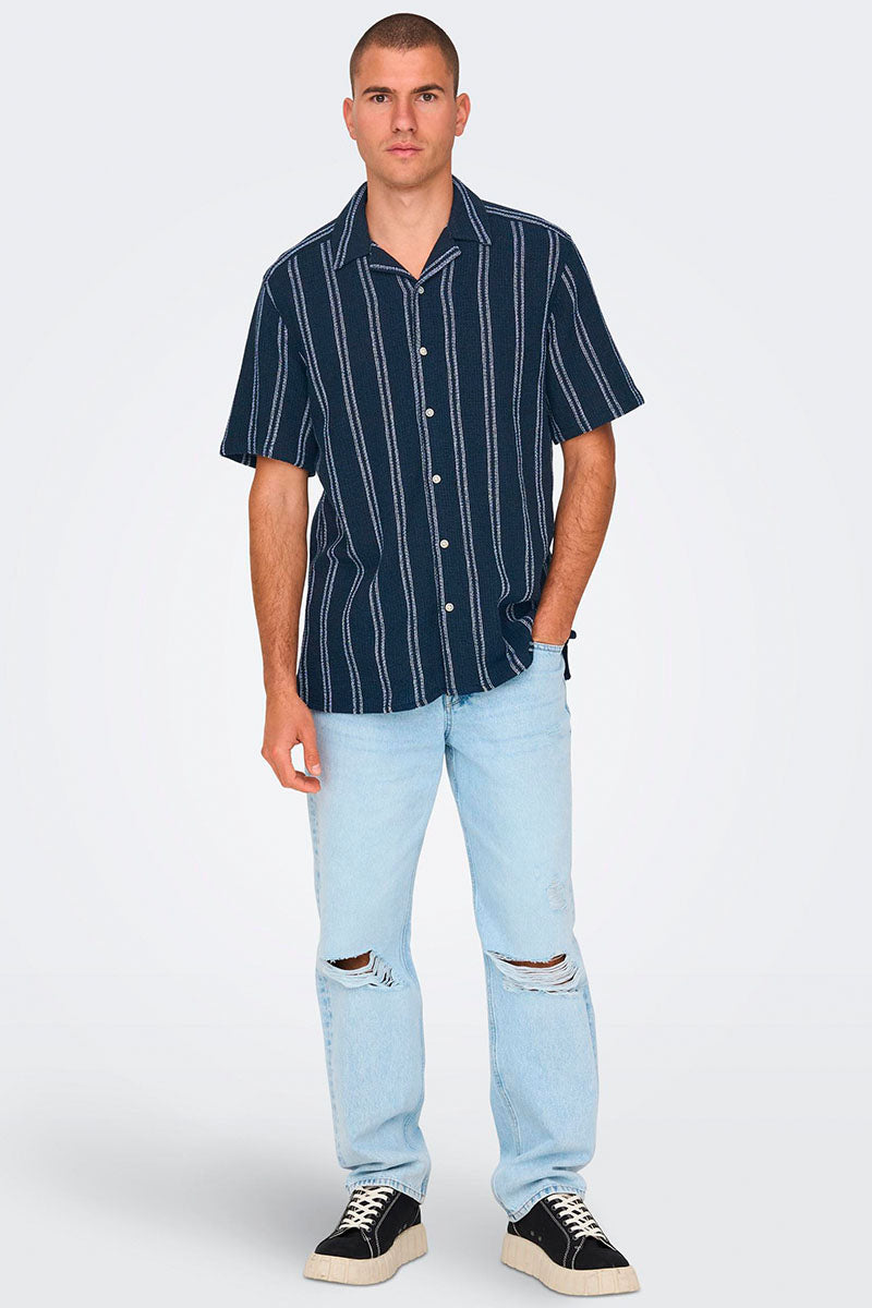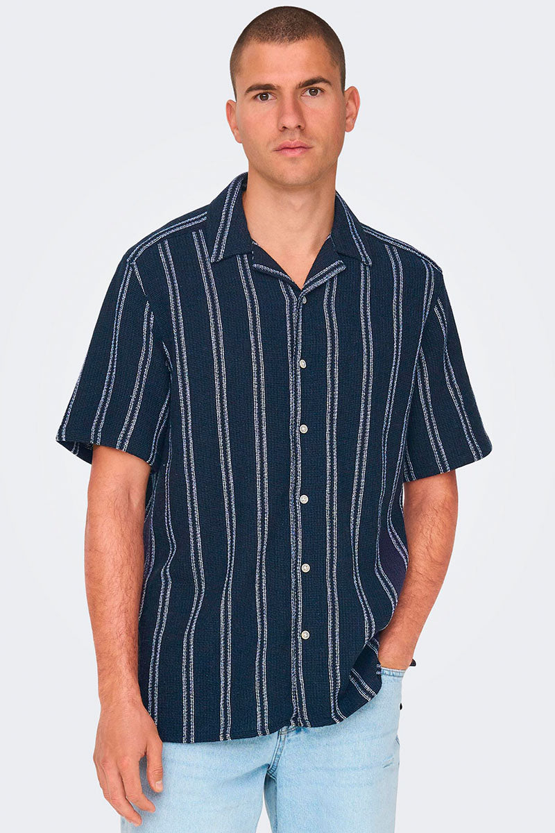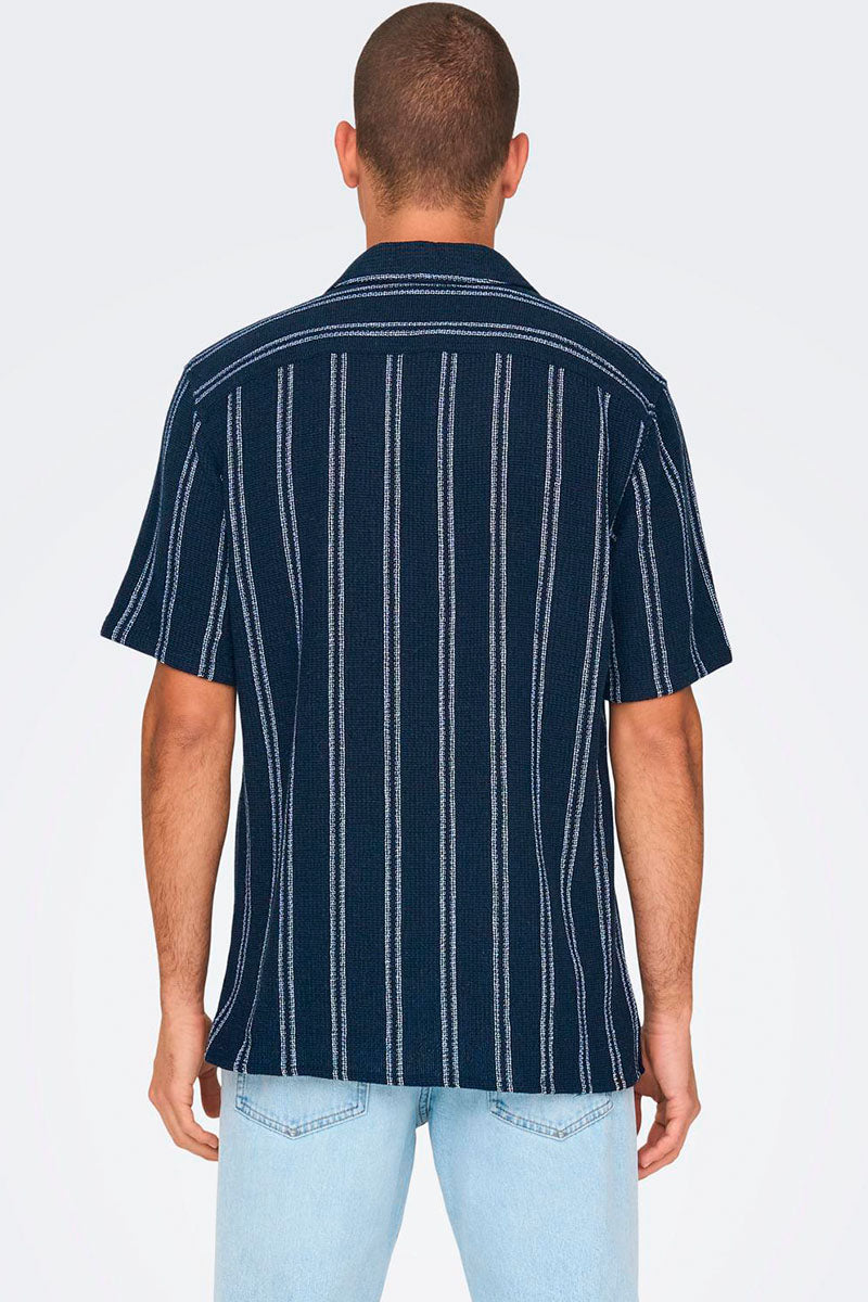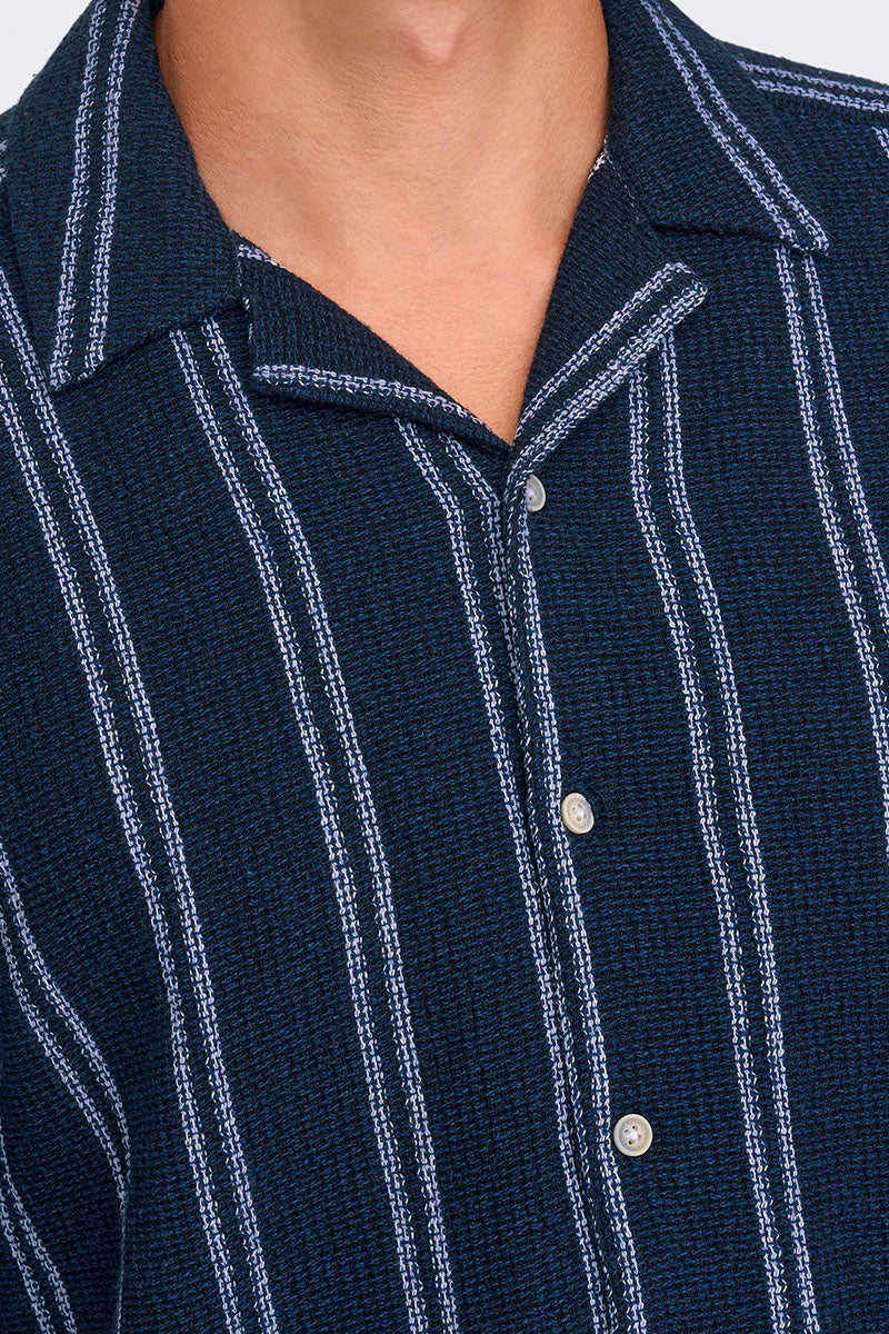 Trev Reg Structure Stripe SS Hemd Dark Navy