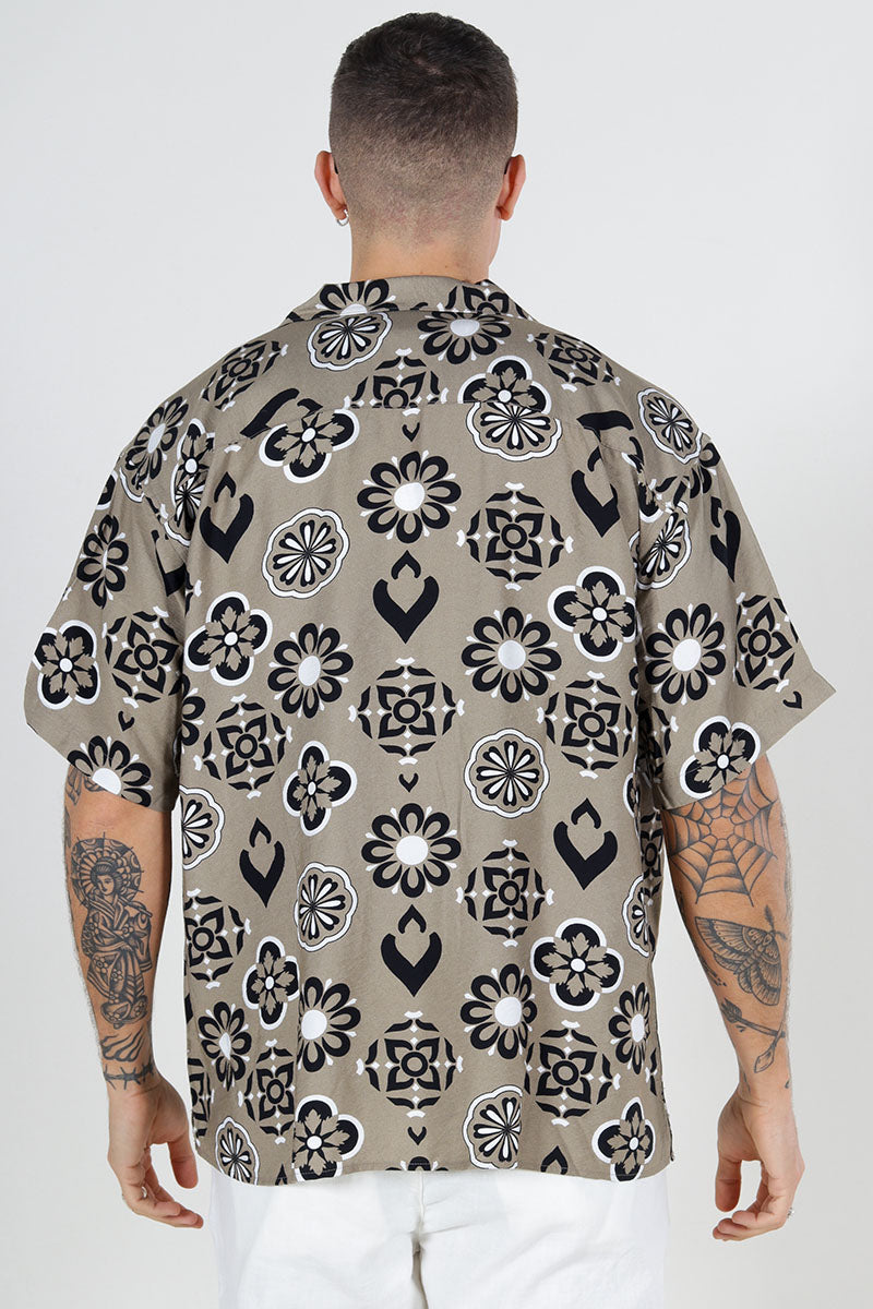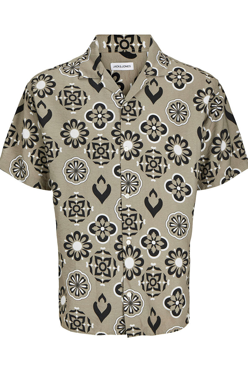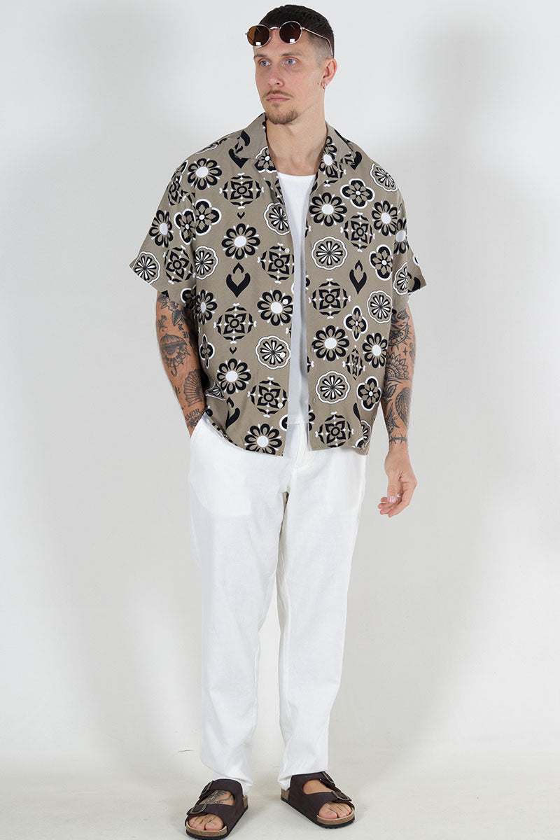 - Das Hemd hat einen Resort-Kragen und eine Knopfleiste