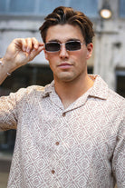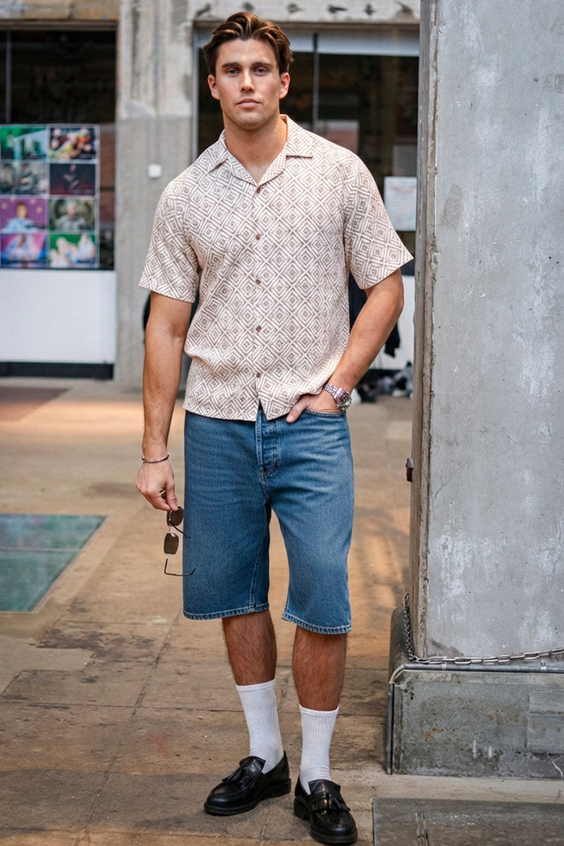 - Kurzarmhemd mit kleinen geometrischen Mustern.