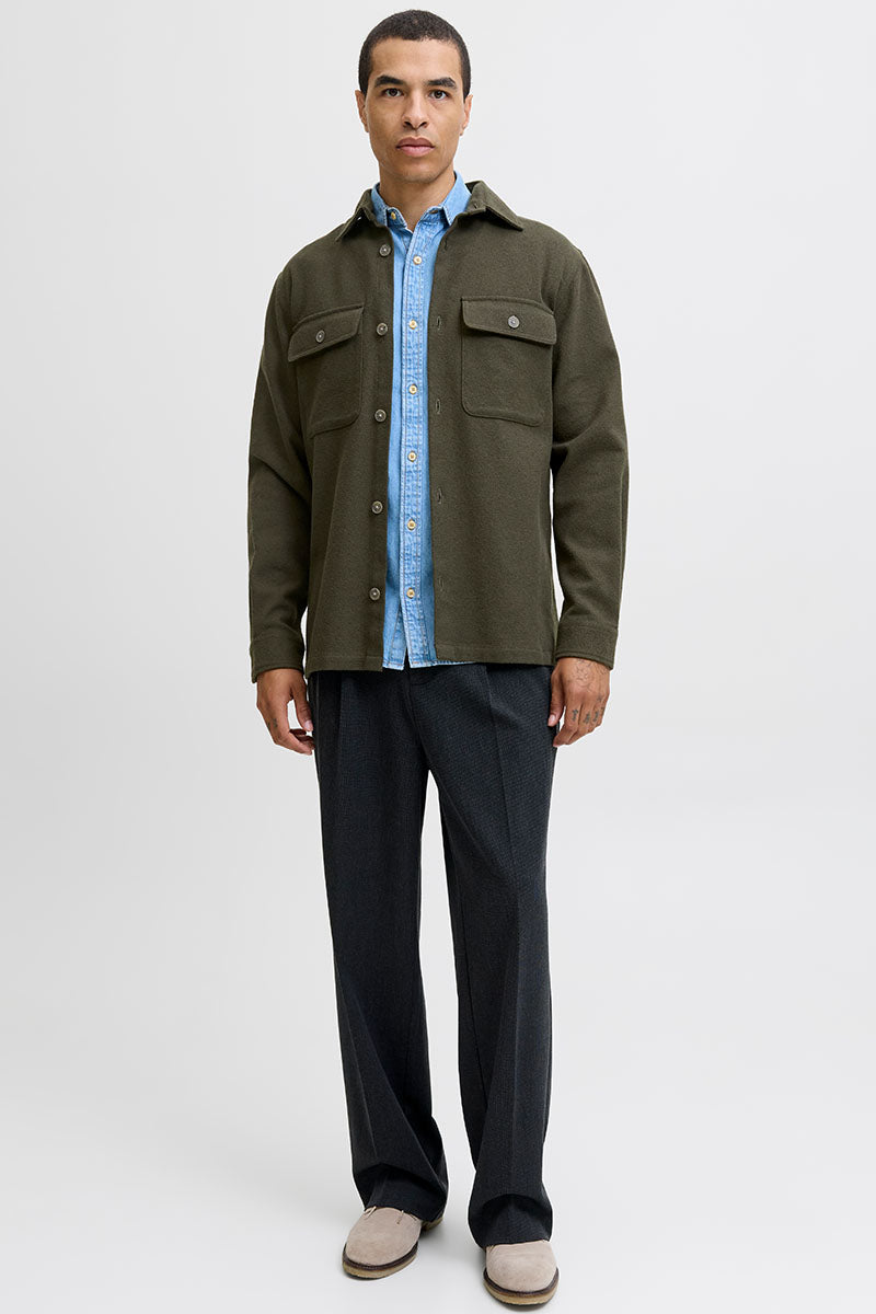 - Dunkelgrünes Overshirt mit langen Ärmeln