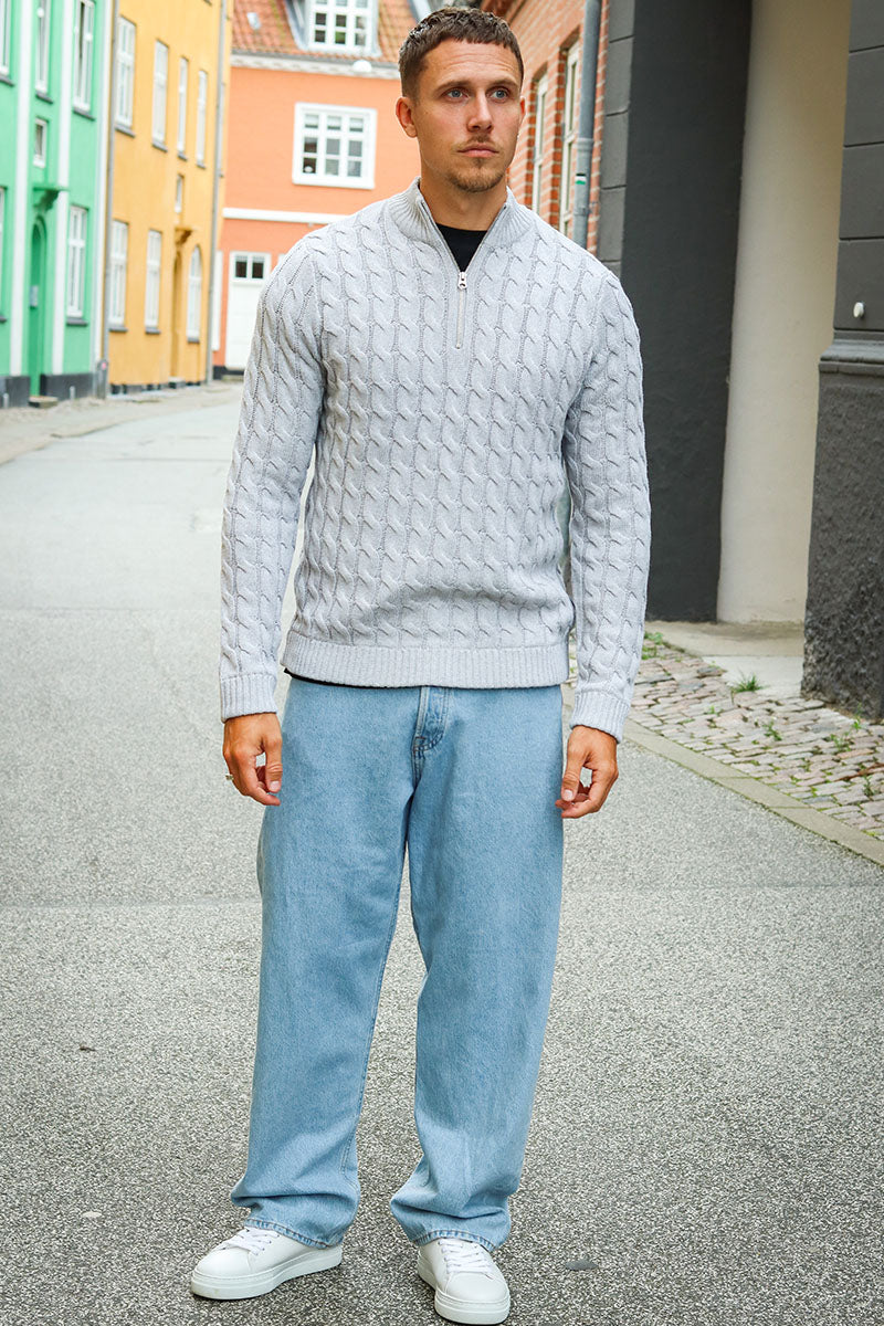 Kicker Cable Knit Half Zip Light Grey Melange