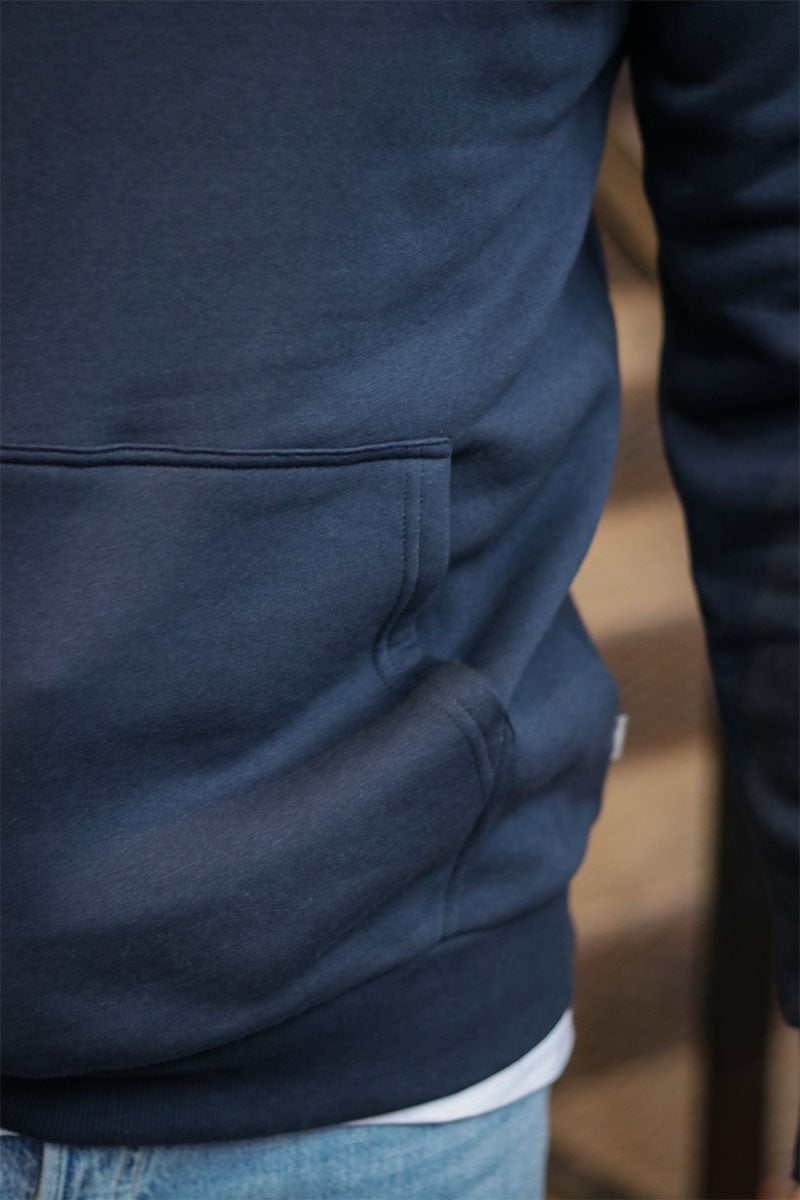 - Das Sweatshirt hat ein kleines Logolabel auf der linken Seite angenäht.
