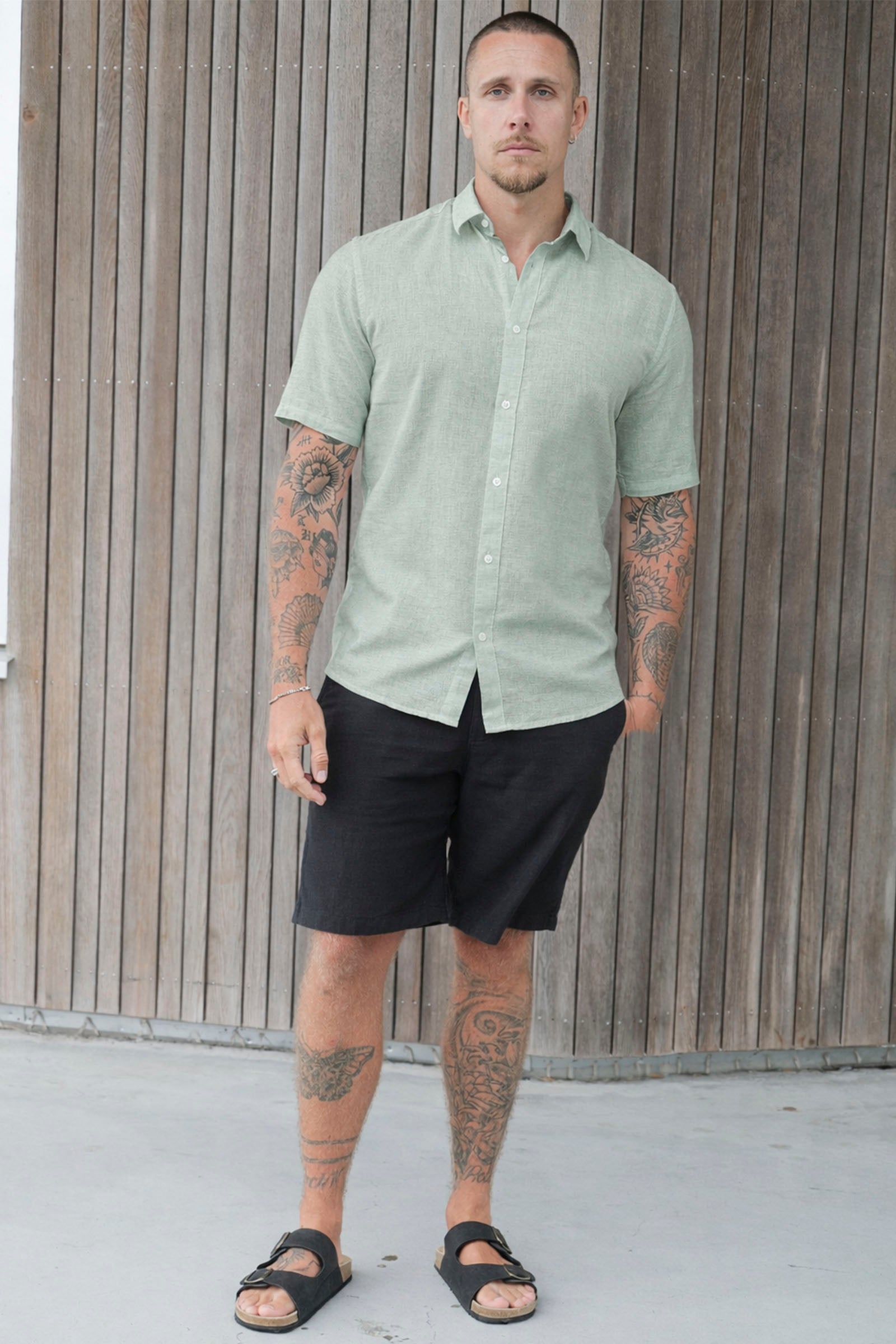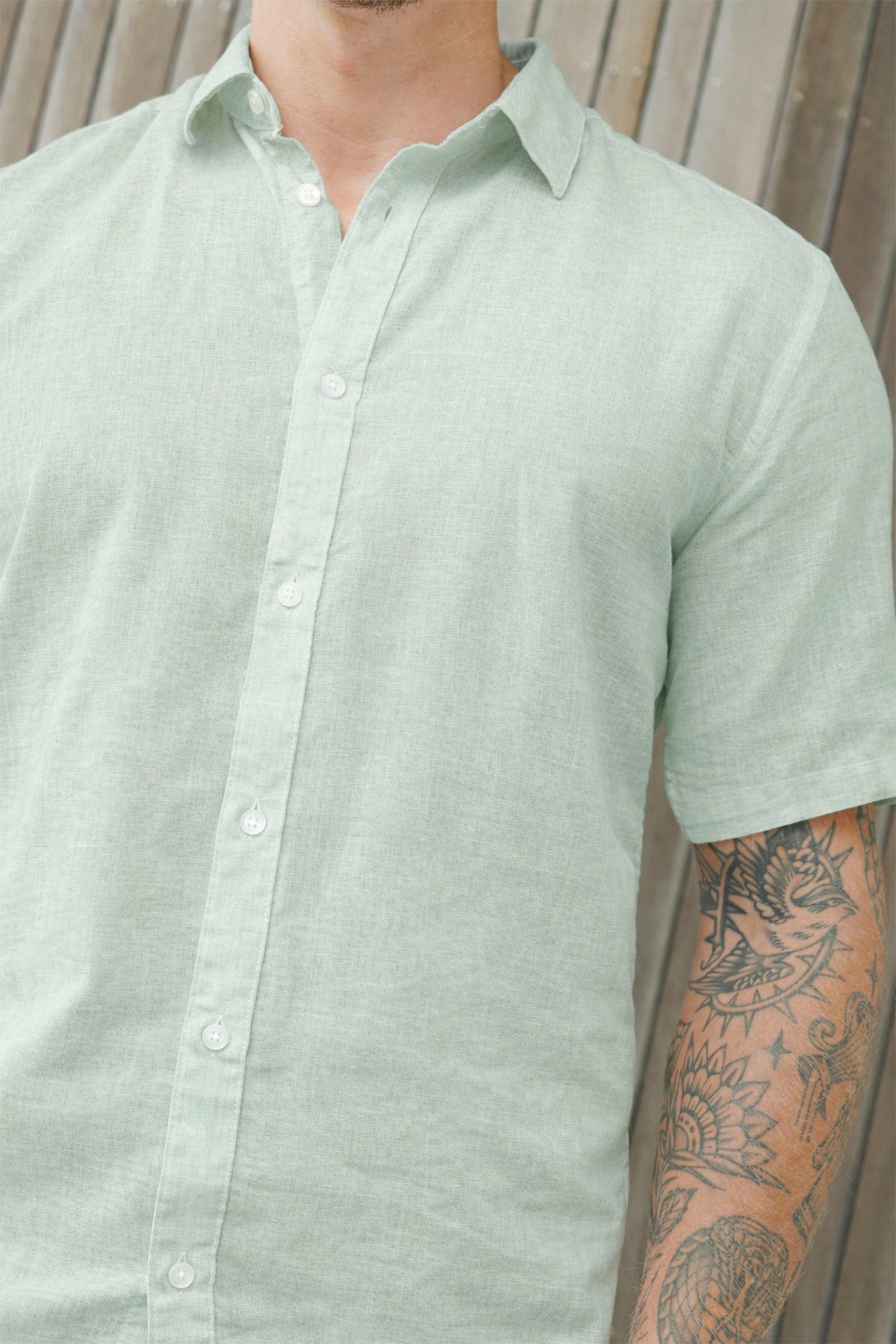Caiden Life SS Solid Linen Blend Quiet Green Shirt