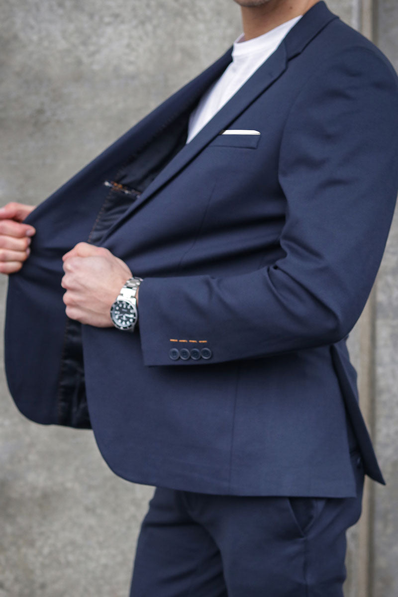 Die perfekte Passform des Anzugs hängt von Ihrem Körperbau ab. Wenn Sie eher schlank sind, wird Ihnen ein schmal geschnittener Anzug gut stehen. Wenn Sie eine breitere Silhouette haben, ist ein weiter geschnittener Anzug genau das Richtige für Sie. Aber egal für welchen Anzug Sie sich entscheiden, mit einem Modell von 2trendy können Sie nichts falsch machen. Sie können Ihren Anzug auch jederzeit zu einem Schneider bringen, wenn er angepasst werden muss. Besonders gut sehen Sie aus, wenn die Ärmel des Blazers bis zu Ihrem Handgelenk reichen und etwa einen Zentimeter Platz für das Hemd lassen. Das lässt Sie gepflegt und stilvoll auftreten. Auch mit der Länge der Hose können Sie experimentieren: Heutzutage sind kürzere Hosen in Kombination mit Slippern sehr beliebt. Wer jedoch rundum klassisch aussehen möchte, ist mit einer Hose in Standardlänge und einem Paar Anzugschuhen aus Leder am besten beraten.