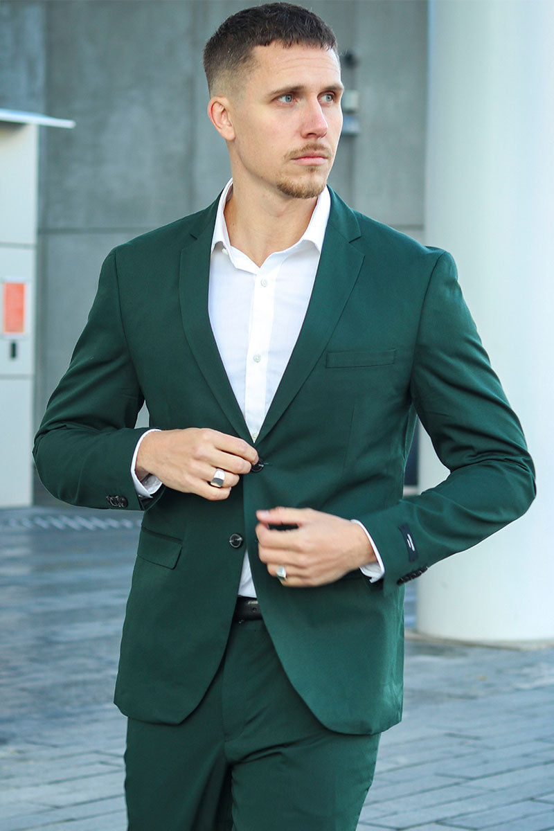 Der Comfort Suit in der Farbe Darkest Spruce ist ein einzigartiger und eleganter Herrenanzug, der sich von den traditionellen Farben abhebt. Es handelt sich dabei um einen dunklen Khaki-Grünton, der einen stilvollen und sophisticated Look verleiht - sowohl für formelle als auch informelle Anlässe geeignet. -
