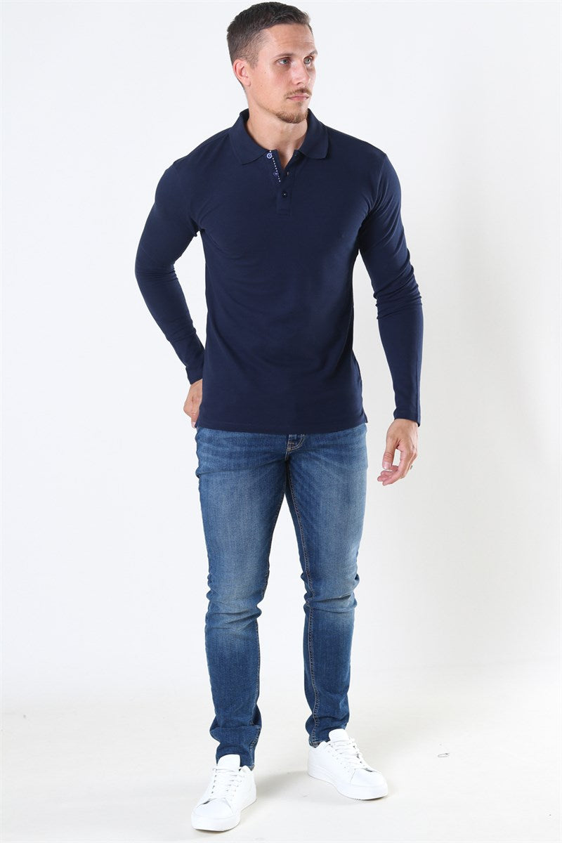Muscle Fit Polo LS Blue Navy