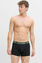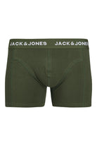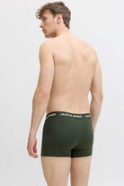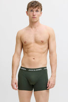 - Alle Boxershorts sind in dunklen Farben mit weißen Details am Bund.