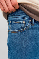 Die Alex Jeans ist mit einer dezenten Jack & Jones Stickerei auf den Gesäßtaschen und einem klassischen Knopfverschluss ausgestattet. Das gestickte Motiv fügt der Jeans ein subtiles Stil-Detail hinzu, während der Knopfverschluss für eine sichere und zeitlose Handhabung sorgt. -