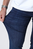 Diese Slim-Fit Jeans kombinieren zeitlosen Stil mit hohem Tragekomfort. Der niedrige Bund und das flexible Stretch-Denim sorgen für eine bequeme Passform, während das schmale, gerade Bein und die enge Beinöffnung eine moderne Silhouette bieten. Ideal für viele Gelegenheiten, sind diese Jeans ein unverzichtbares Kleidungsstück für die Garderobe.