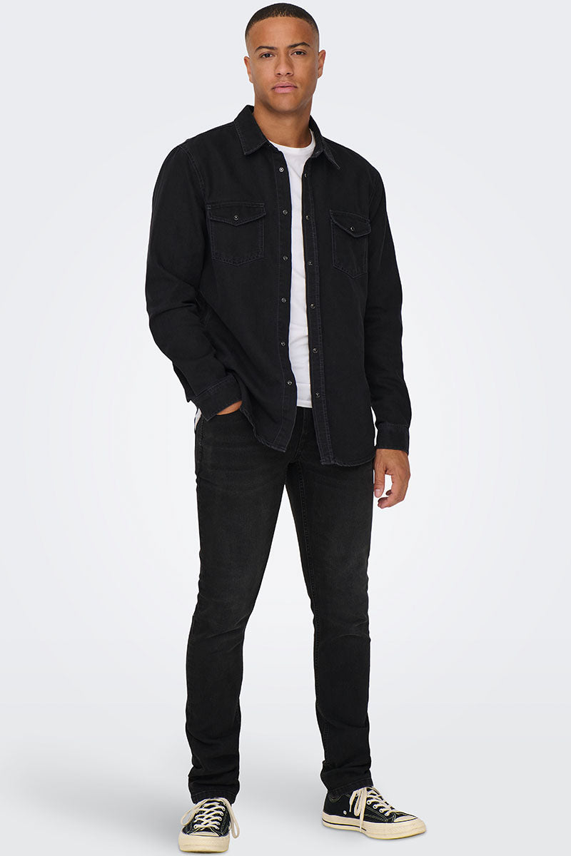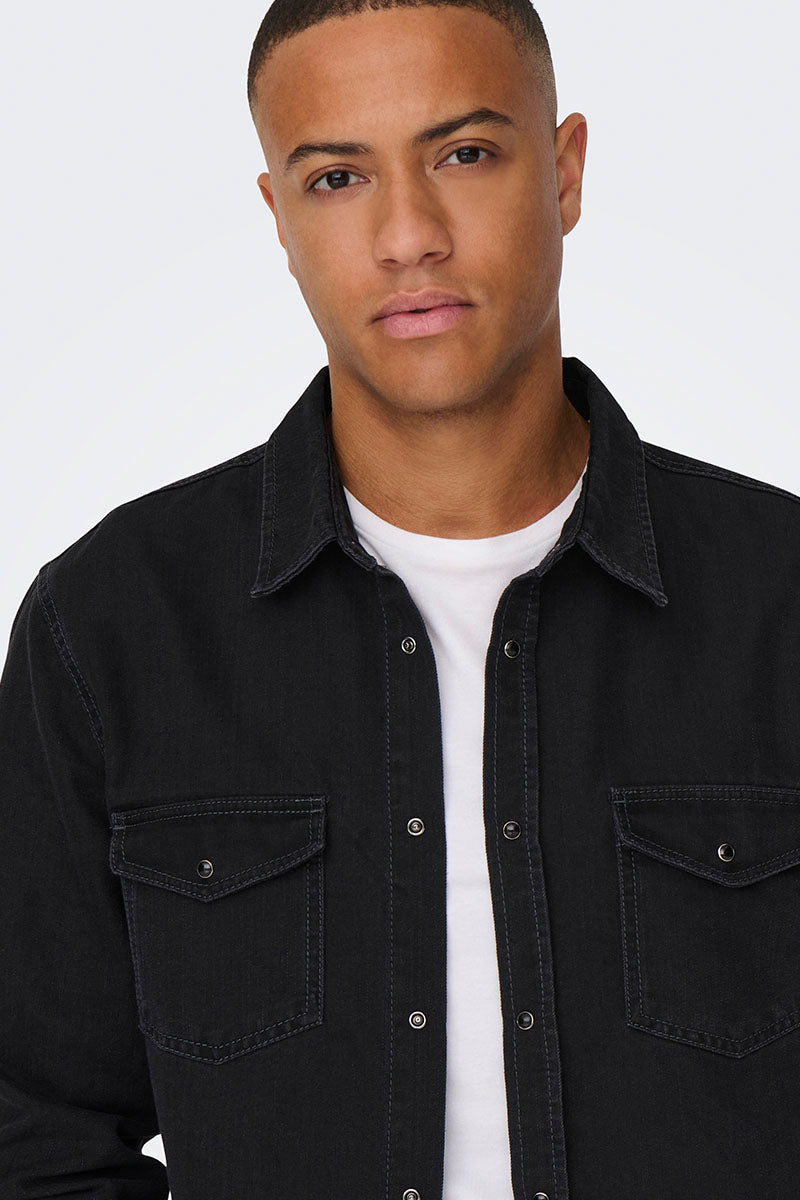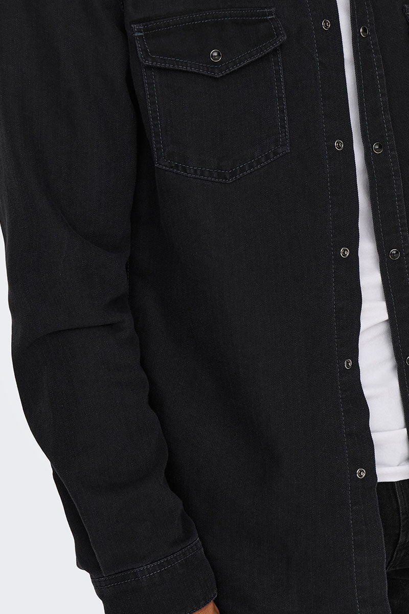 Bane Regular Fit Denim Shirt Dark Grey Denim