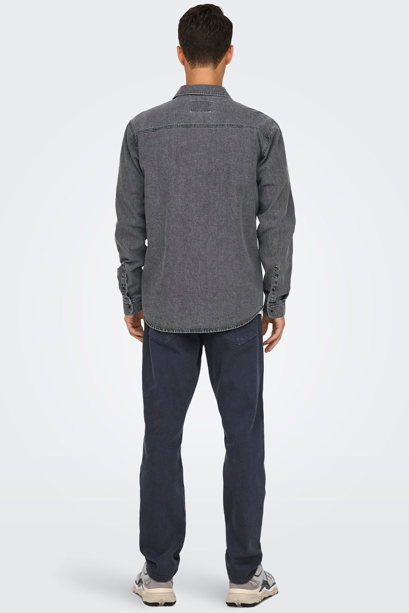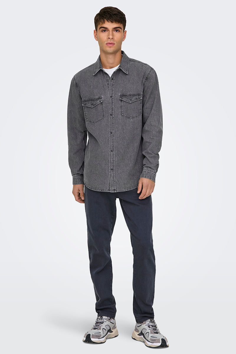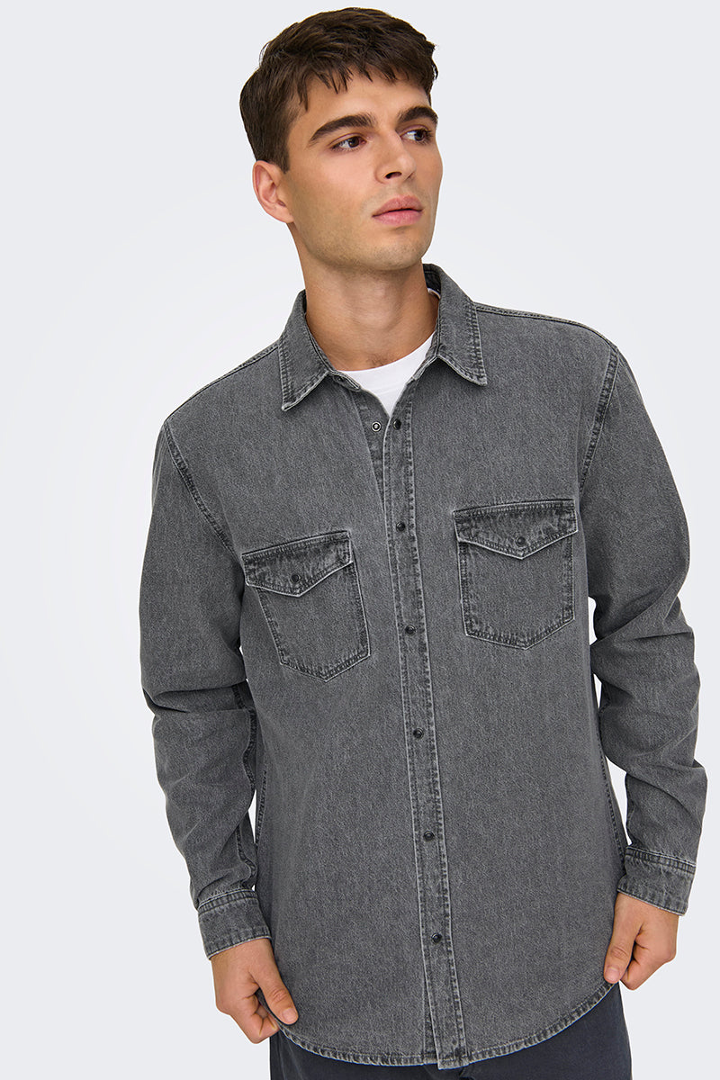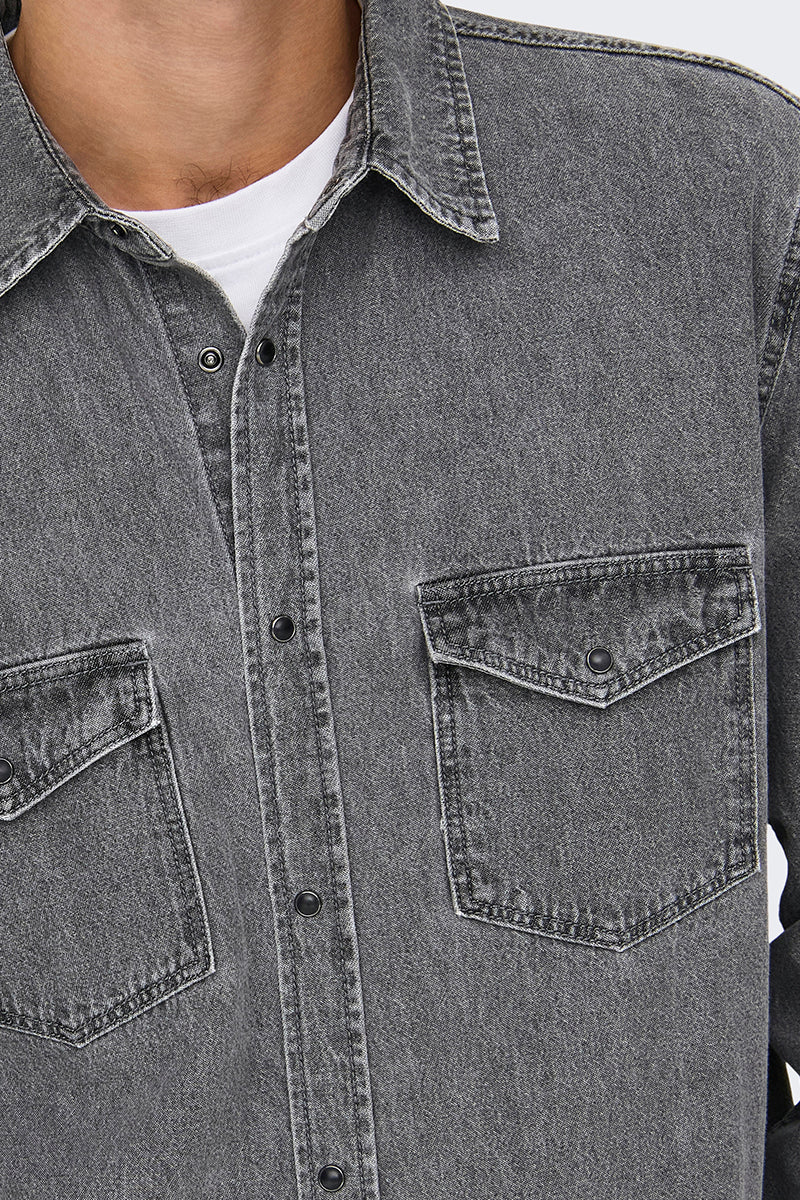 Bane Regular Fit Denim Shirt Light Grey Denim