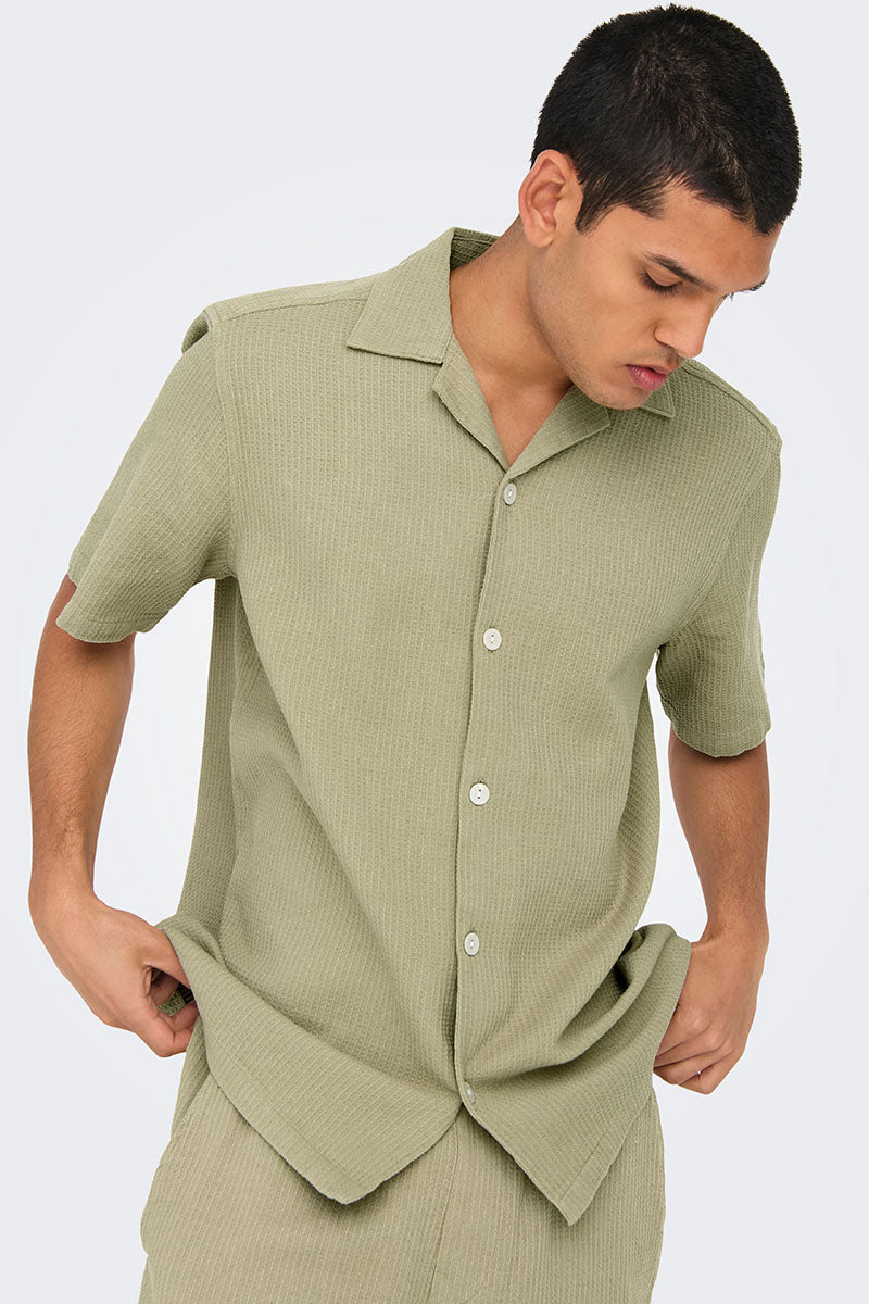 • Beiges kurzärmeliges Hemd mit regulärer Passform