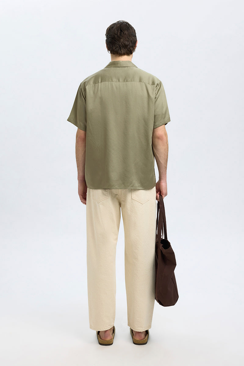 3. Das Hemd in die Hose stecken und mit einem Gürtel in Szene setzen oder aber locker über der Hose tragen