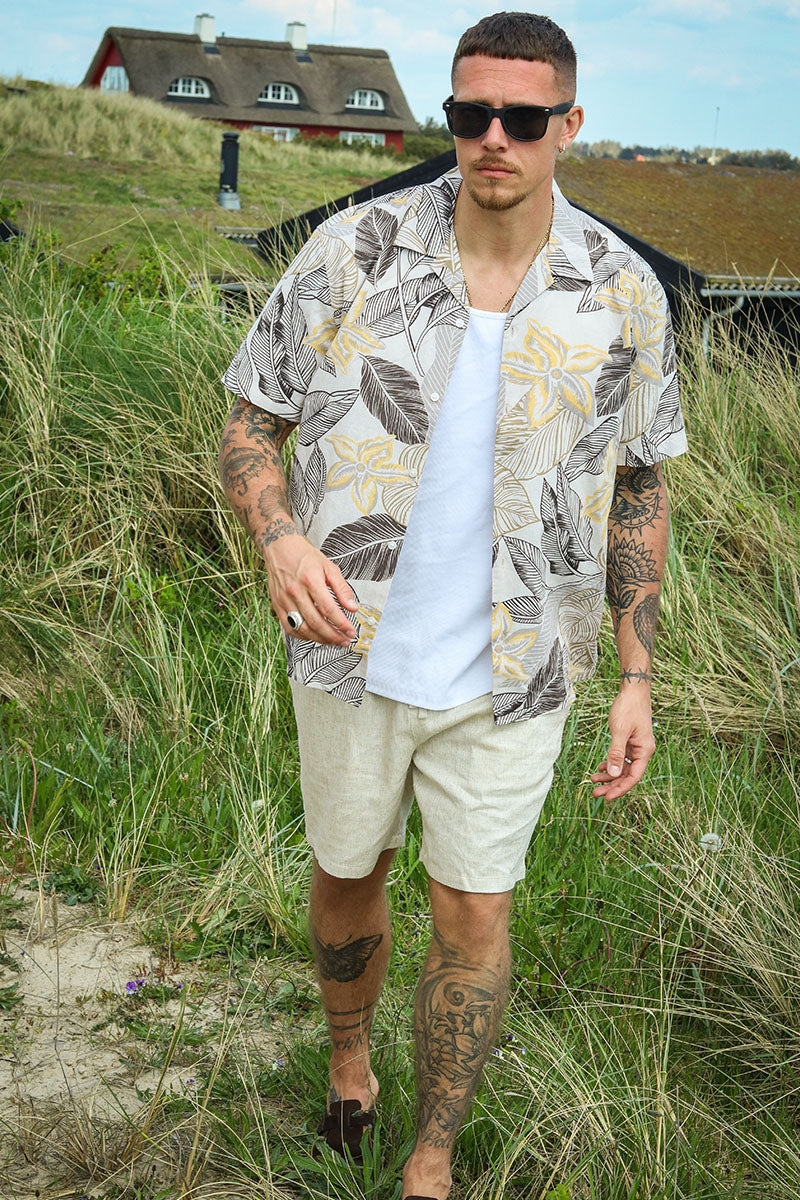 Relax New Linen Shirt SS Resort Fog Leaves