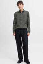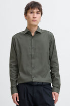 - Dunkelgrünes Langarmhemd im Slim Fit