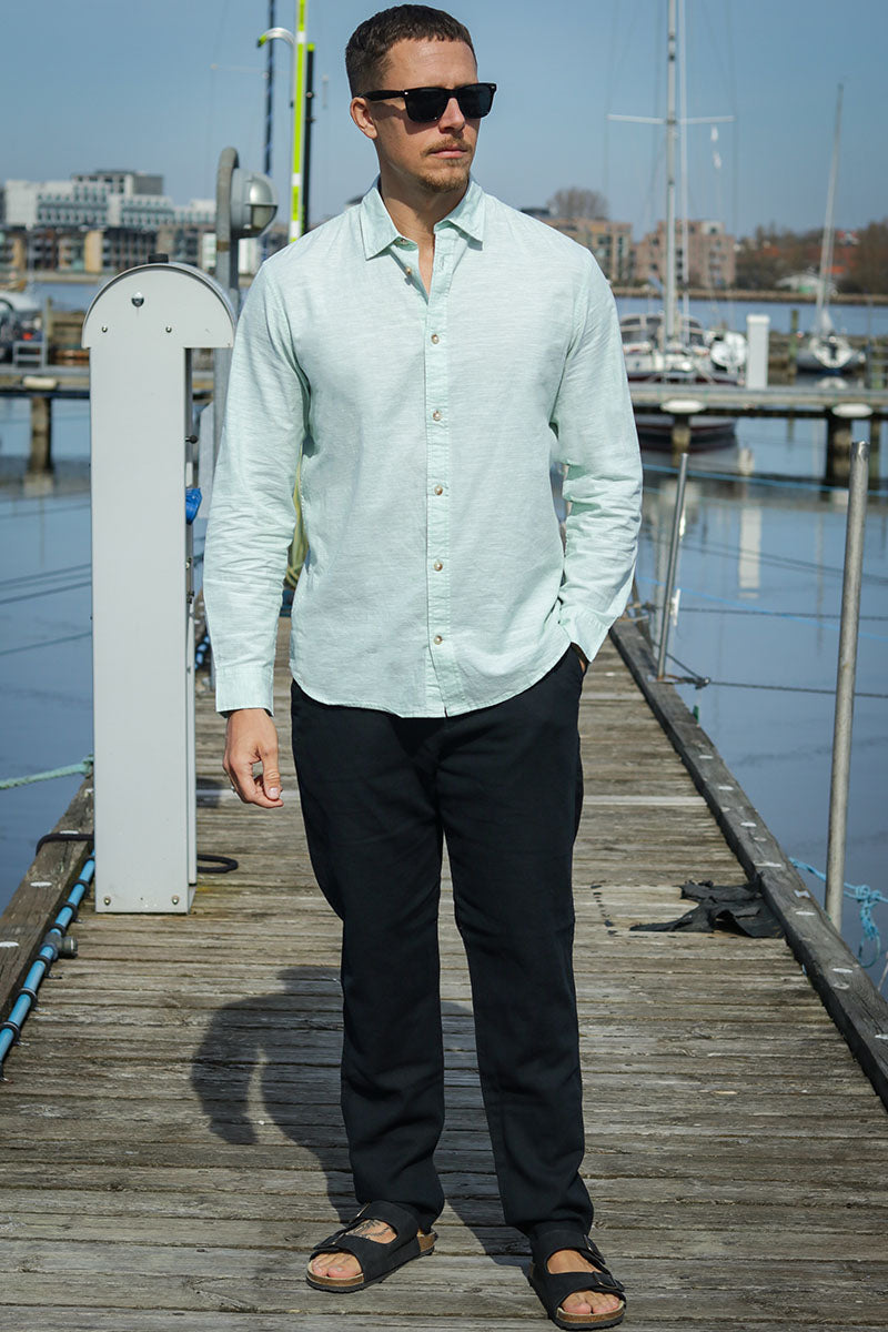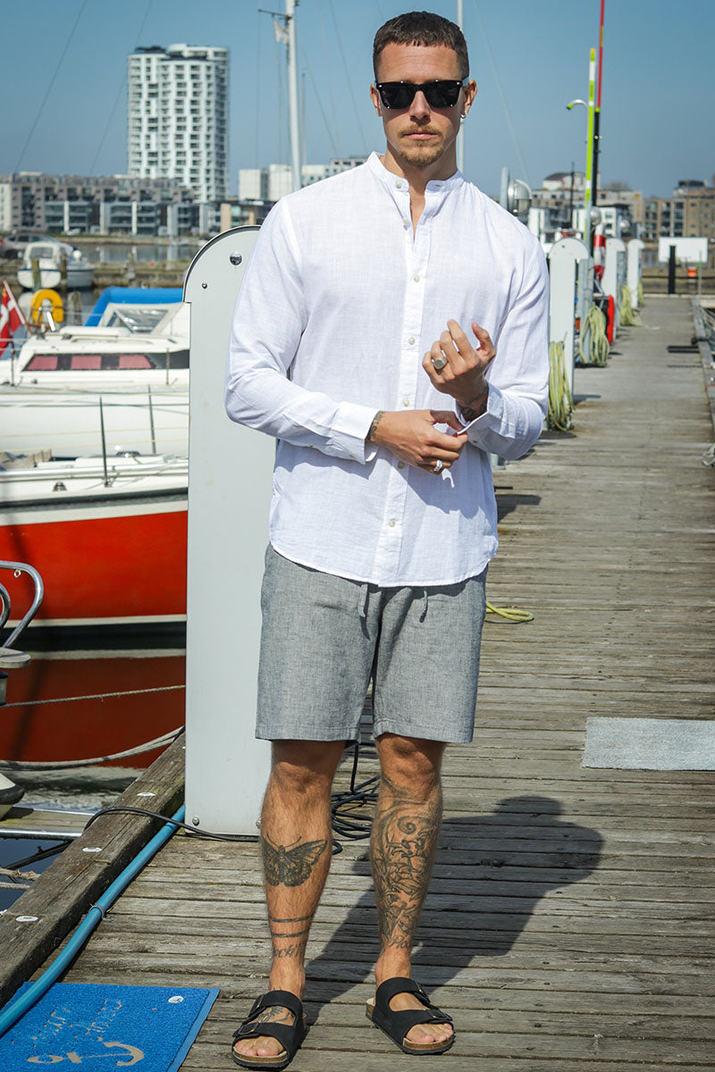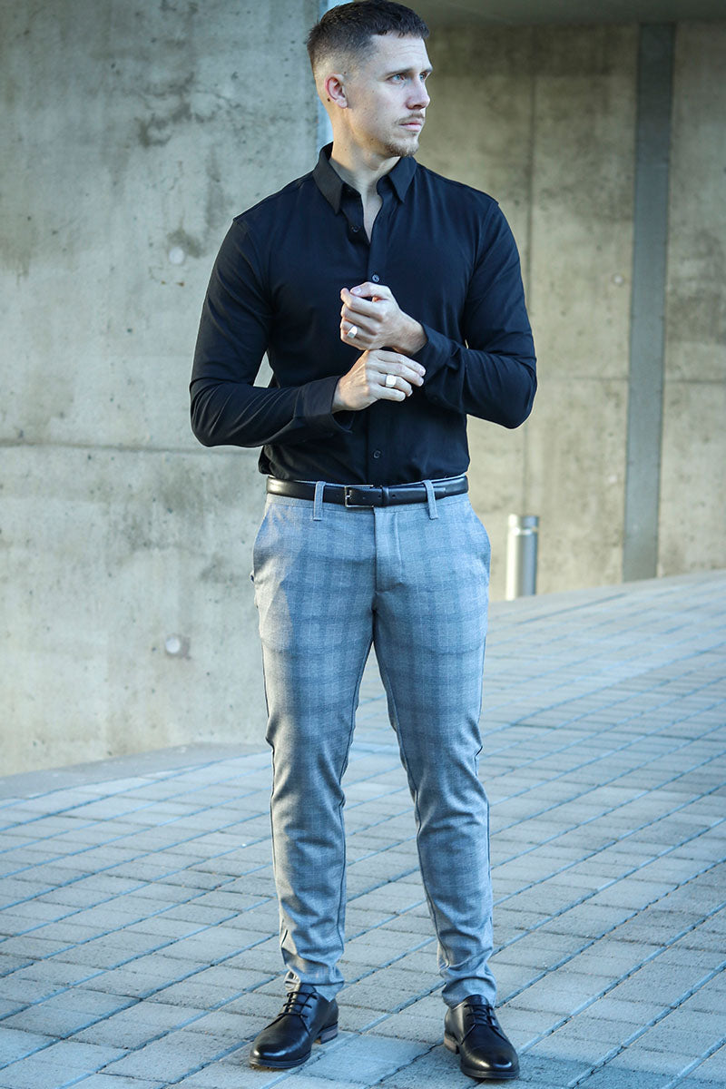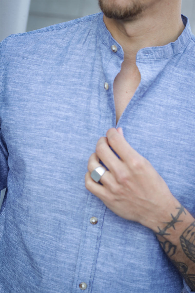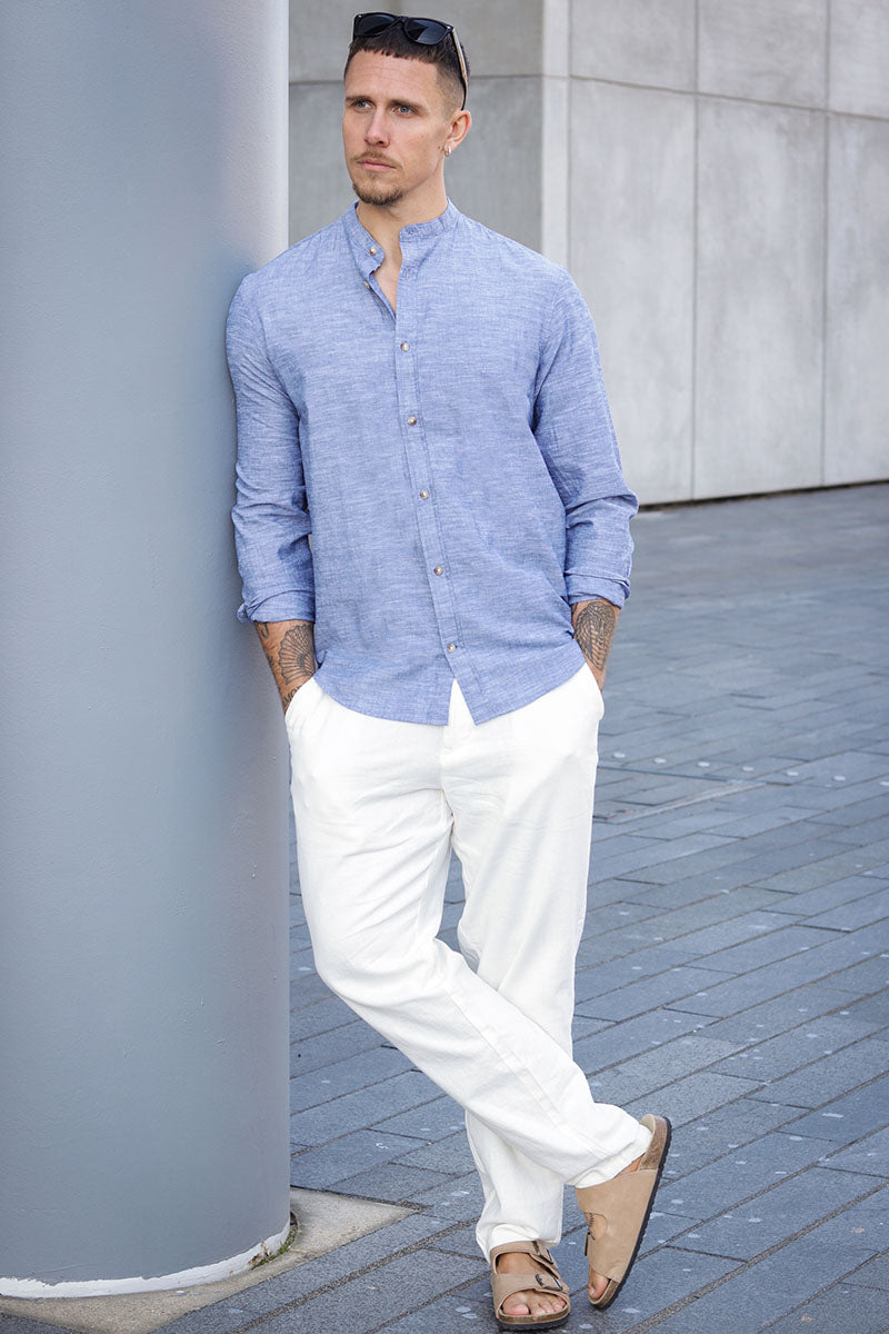 3. Das Hemd in die Hose stecken und mit einem Gürtel in Szene setzen oder aber locker über der Hose tragen