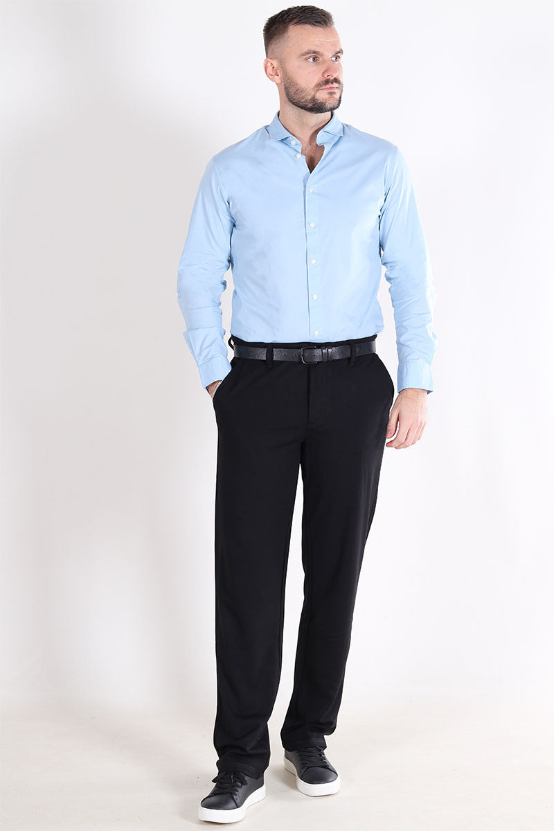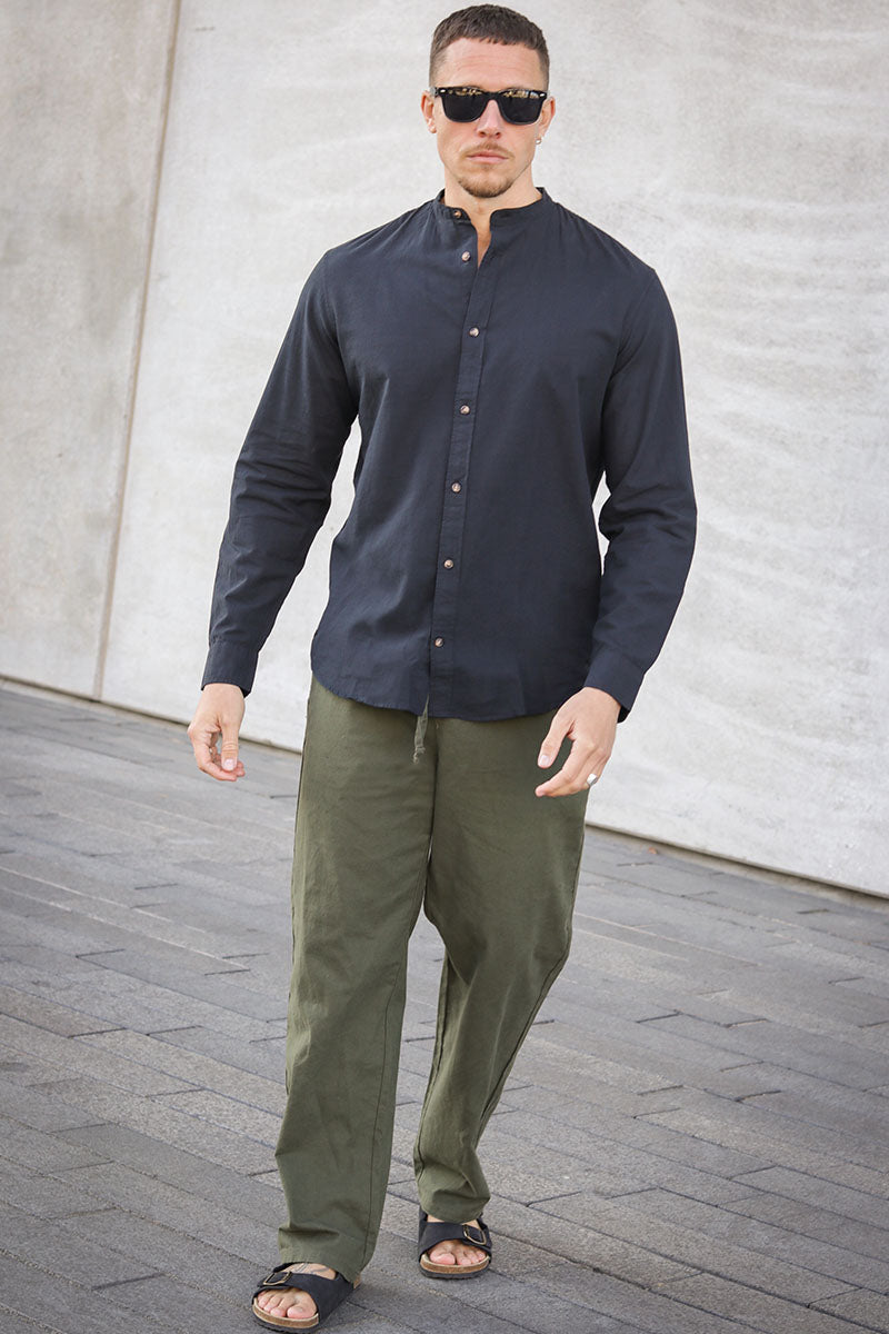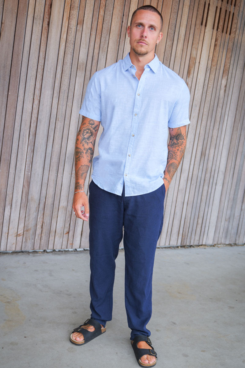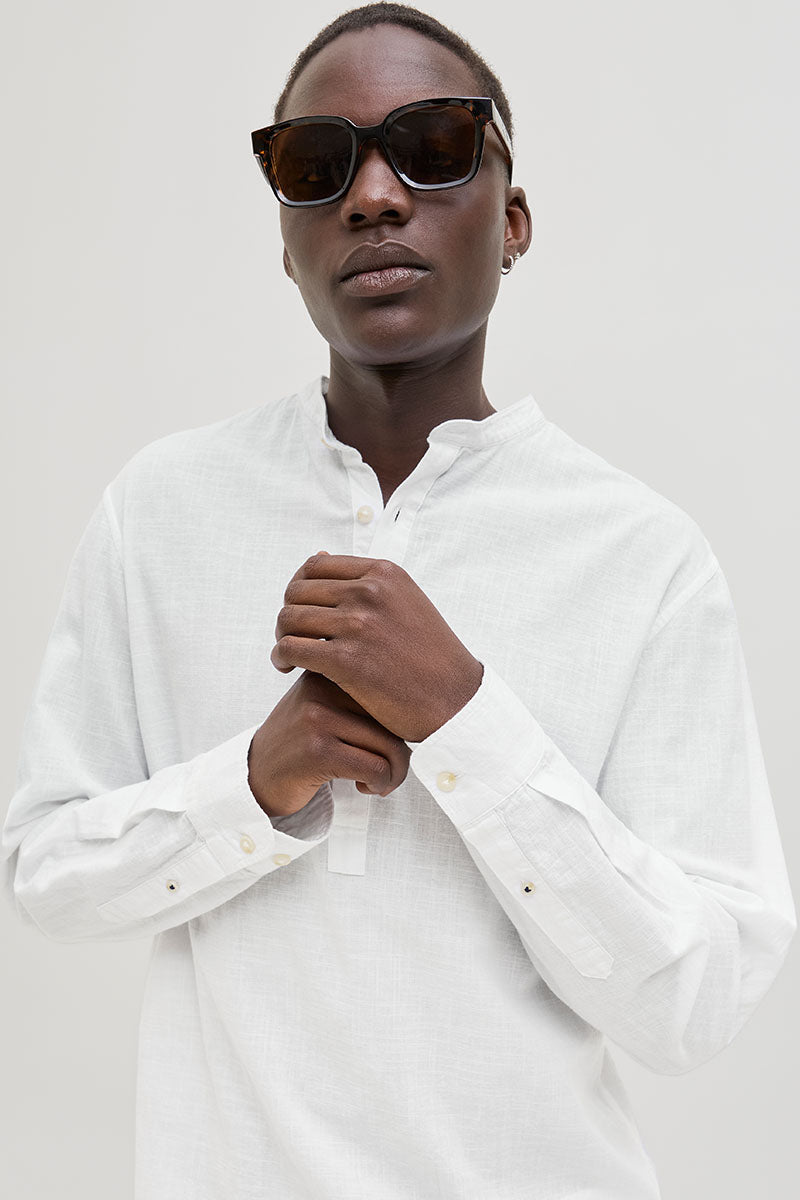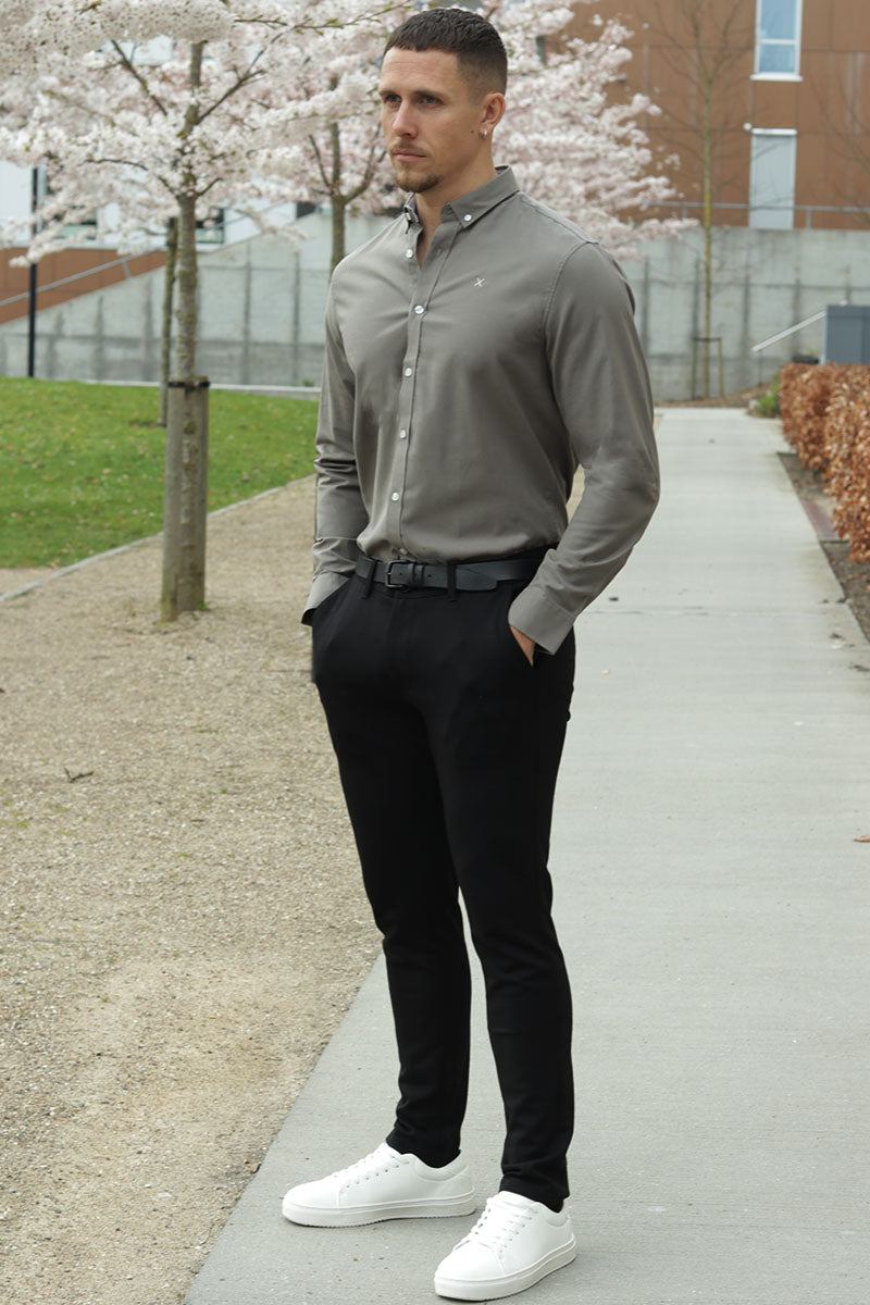 3. Das Hemd in die Hose stecken und mit einem Gürtel in Szene setzen oder aber locker über der Hose tragen