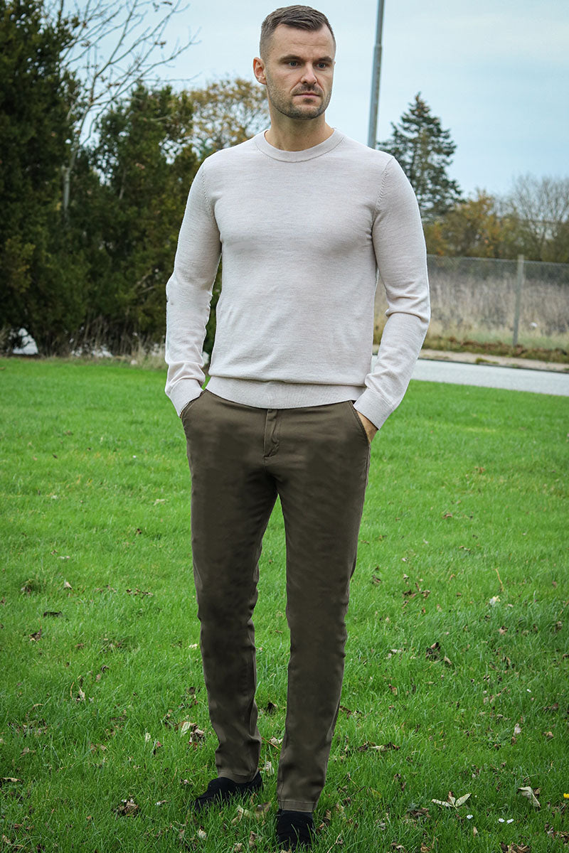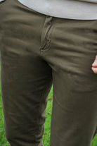 - Slim fit Stretchhose mit Schlitztaschen vorne und hinten.