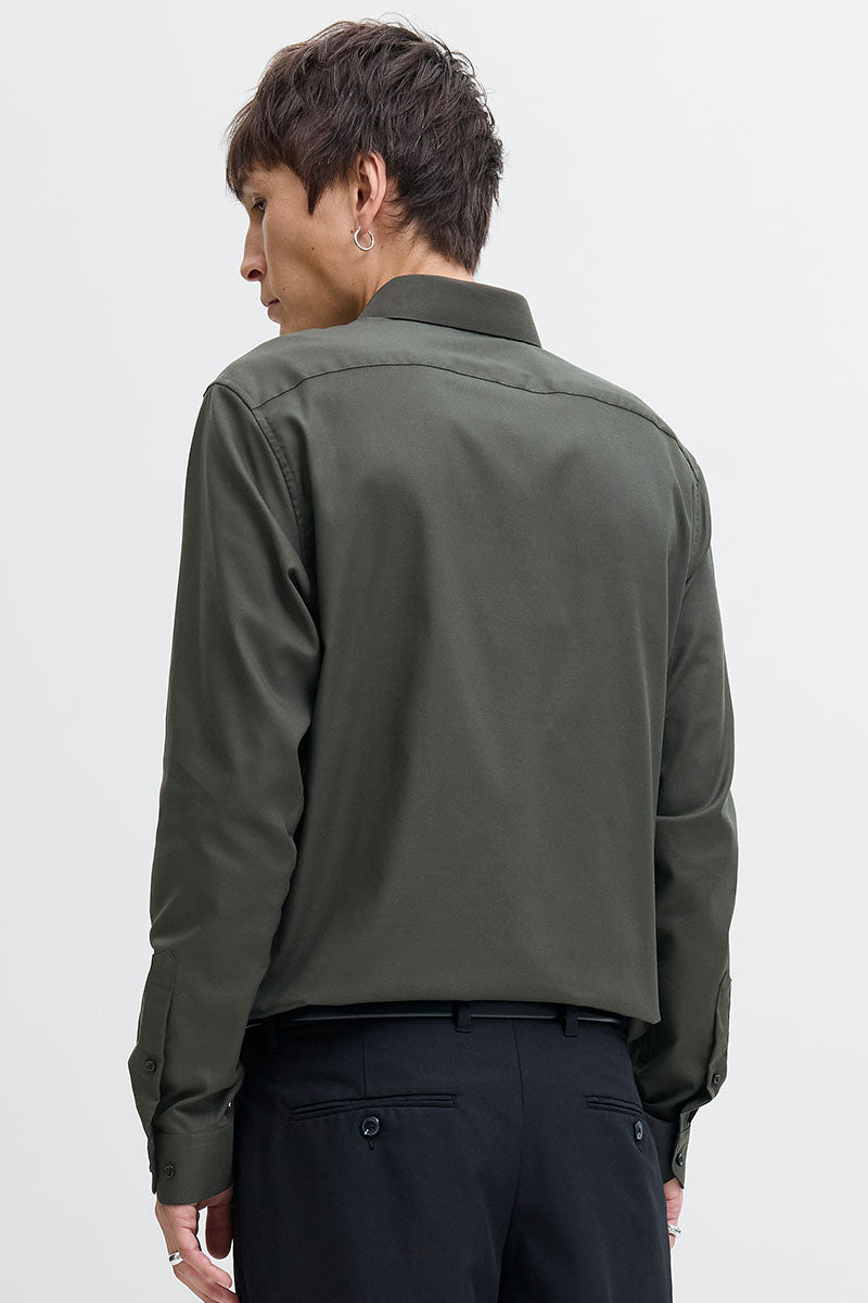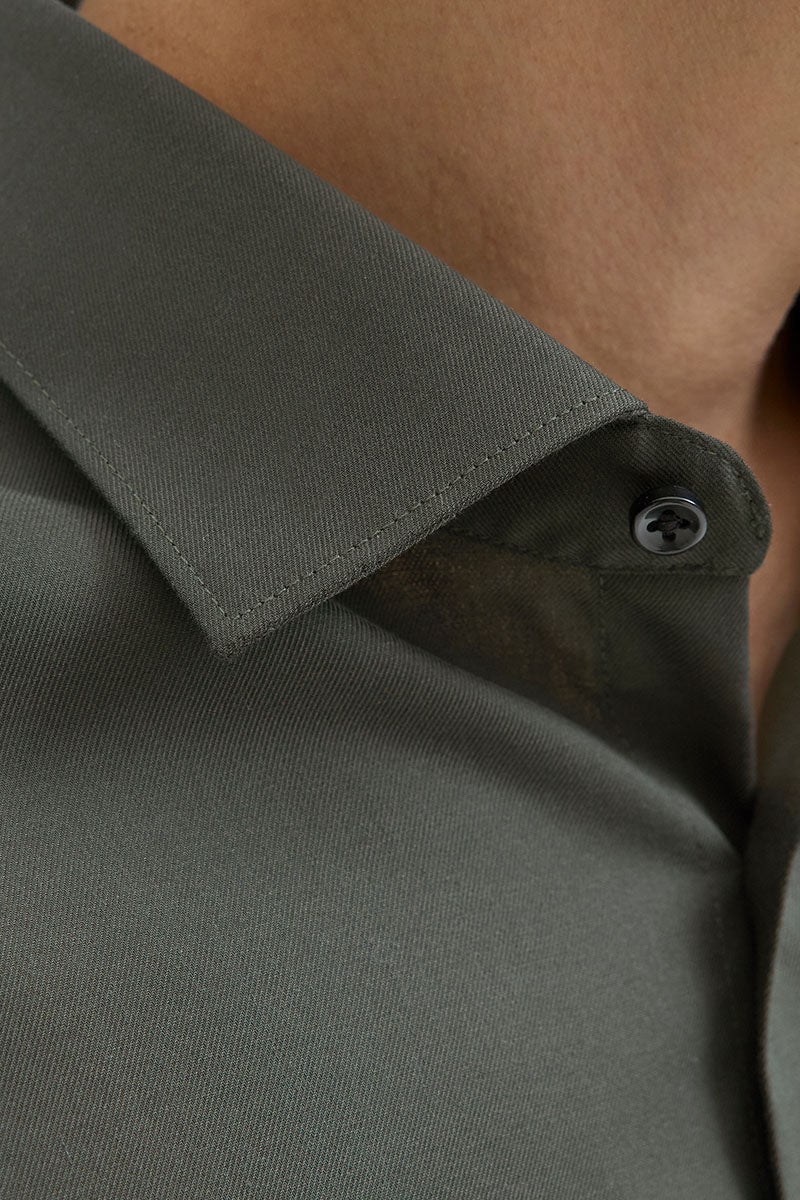 - Dunkelgrünes Langarmhemd im Slim Fit