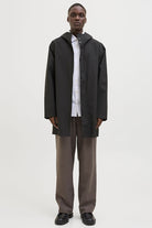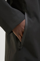 - Mit Knopfverschluss und Reißverschlusstaschen