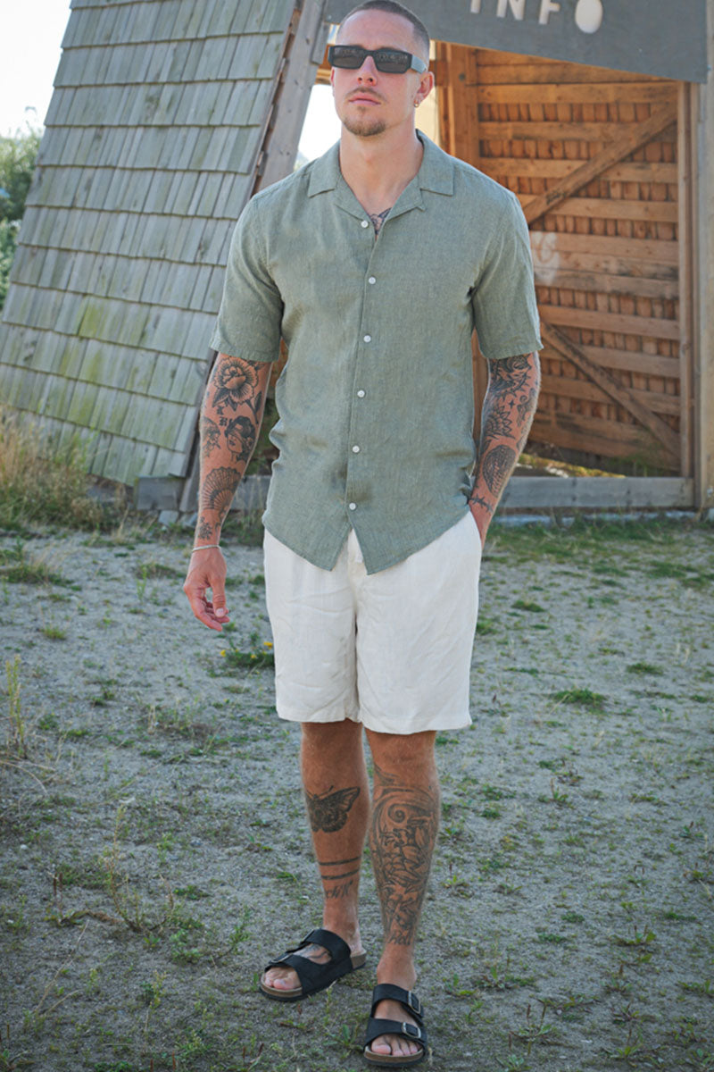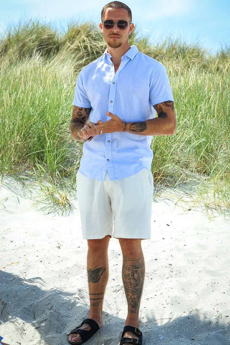 Wie bei den meisten anderen Kleidungsstücken lässt sich auch bei Leinen die Passform so anpassen, dass Sie genau den Look und Stil erreichen, den Sie wünschen. So wie bei T-Shirts ist es sehr beliebt geworden, vor allem kurzärmelige Leinenhemden in Übergröße zu wählen. Dies erhöht den Komfort der ohnehin schon sehr bequemen Hemden und verleiht ihnen außerdem einen urbaneren, trendigen Streetwear-Look. Natürlich können Sie sich auch für eine schlankere Passform entscheiden, wie Sie es bei normalen Baumwoll-Oberhemden tun würden. Kurz gesagt: auch Leinen-Bekleidung lässt sich wie jeder andere Stoff sowohl aufgepimpt als auch dezent tragen - je nach Anlass und gewünschtem Stil. Wenn Sie ein formelles Herren-Oberhemd für die Arbeit suchen, das für die heißen Sommermonate atmungsaktiver als gewöhnliche Oberhemden ist, probieren Sie eines unserer langärmeligen Leinenhemden. Wenn Sie in den Urlaub in den sonnigen Süden fahren und sich vor allem entspannen möchten, eignet sich möglicherweise ein kurzärmeliges Leinenhemd mit Muster. Das Gleiche gilt für Leinenhosen und Leinenshorts. Jedes dieser beiden Kleidungsstücke können Sie entweder schlicht mit einem Baumwoll-T-Shirt und einer Sonnenbrille kombinieren, oder Sie tragen ein Herren-Oberhemd dazu, vielleicht ebenfalls aus Leinen, für einen formelleren Look. Auch die Passform lässt sich an Ihre persönlichen Vorlieben anpassen.