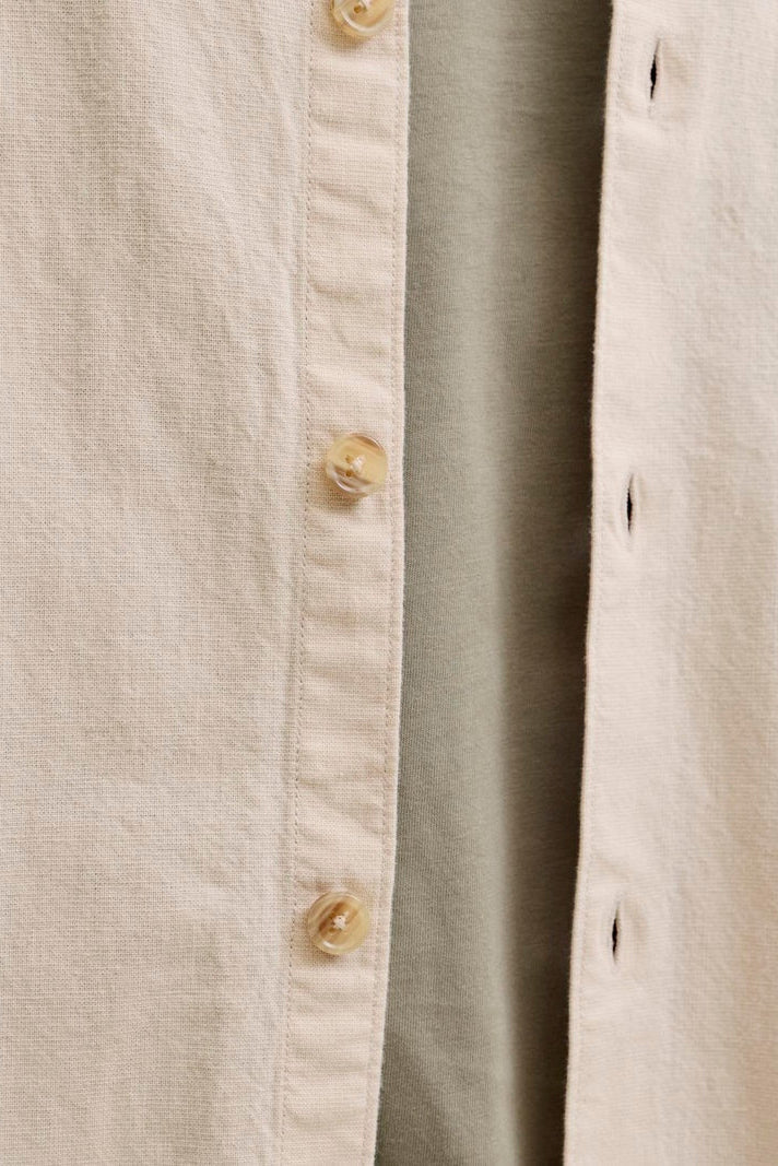 Dieses Overshirt in einem sanften Moonbeam-Ton überzeugt durch seinen entspannten Schnitt und den klassischen Hemdblusenkragen. Die bequemen, langen Ärmel enden in Knopfmanschetten, und eine durchgehende Knopfleiste sorgt für das typische Hemd-Design. Ein praktisches Brusttaschen-Detail rundet das lässige, traditionelle Erscheinungsbild ab. Das Overshirt eignet sich perfekt für den Alltag und lässt sich vielseitig kombinieren.