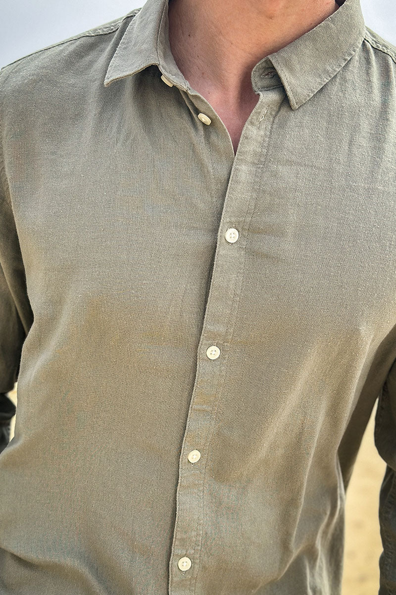 Enea Allan Linen Hemd LS Vetiver