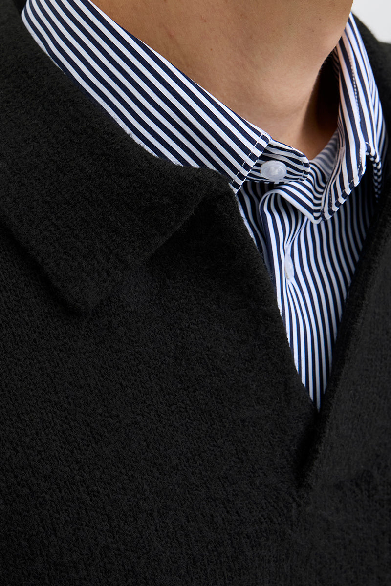 Dieser Ollie Knit Pullover mit Schlitzkragen ist ein lässiger und bequemer Strickpullover, der weiche Materialien für optimalen Tragekomfort kombiniert.