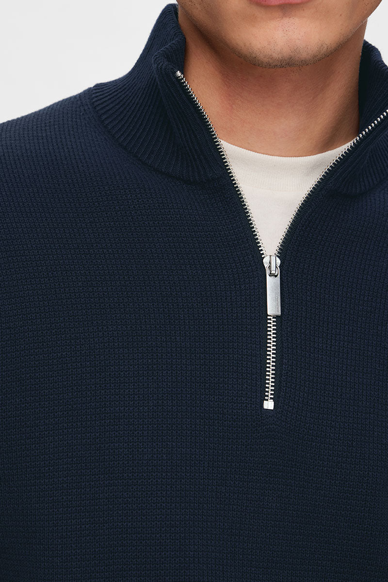 • Dunkelblauer langärmeliger Strickpullover im Regular Fit