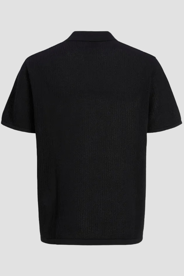 Jerry Knit Split Neck Polo SS Black