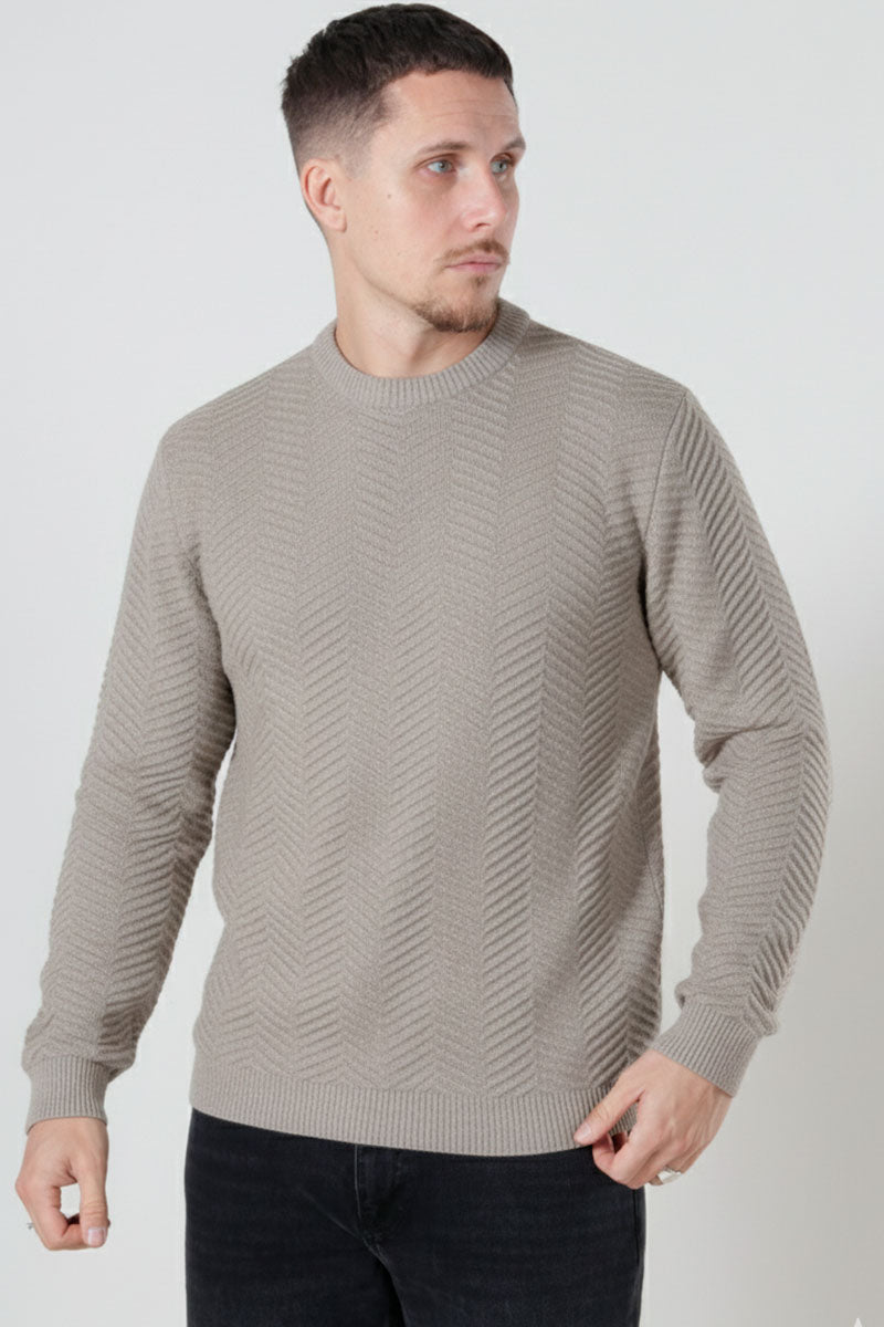 - Mit gestreiftem Muster und Rundhalsausschnitt