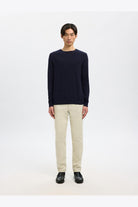 Ein zeitloser und bequemer Strickpullover, der sich perfekt für die alltägliche Garderobe eignet. Der Rundhalsausschnitt und die langen Ärmel sowie die gerippten Bündchen verleihen diesem Pullover einen klassischen Look. Der Regular Fit sorgt für eine angenehme Passform, die Bewegungsfreiheit bietet. Das Material aus einer Mischung von 50% Baumwolle und 50% Bio-Baumwolle fühlt sich angenehm auf der Haut an und unterstützt einen nachhaltigen Lebensstil.