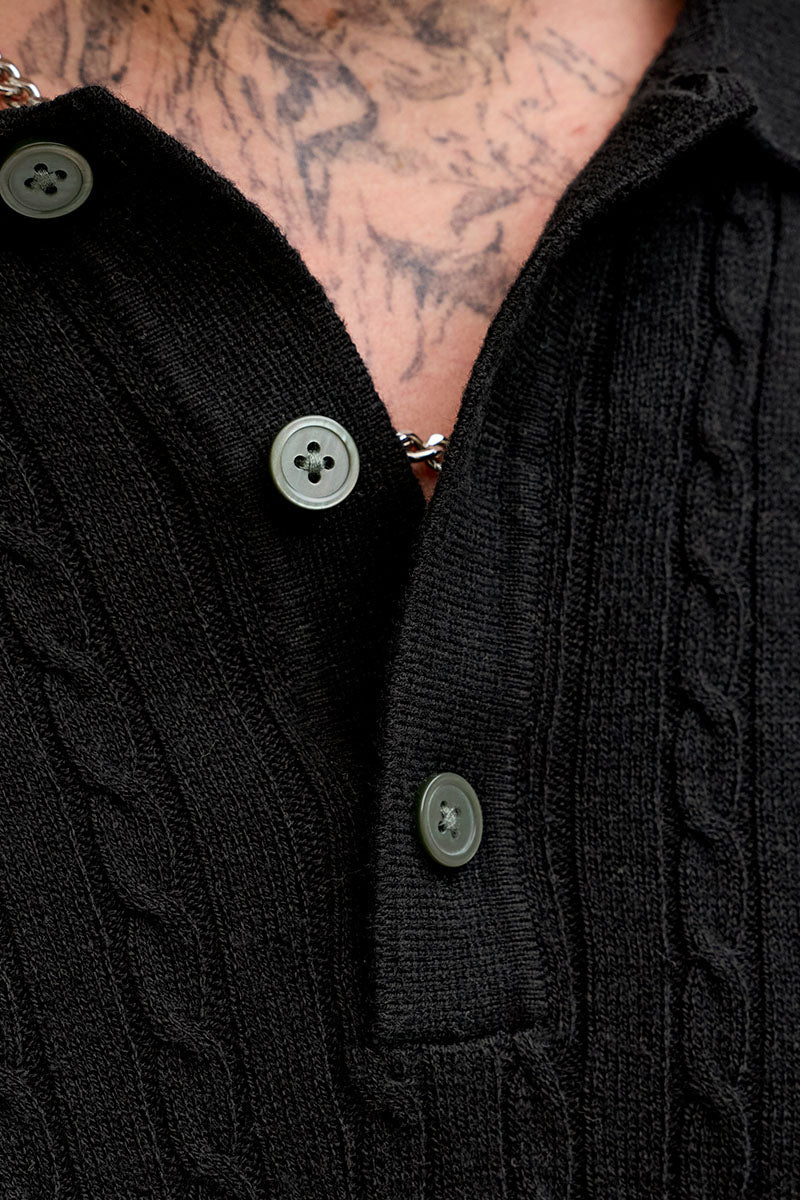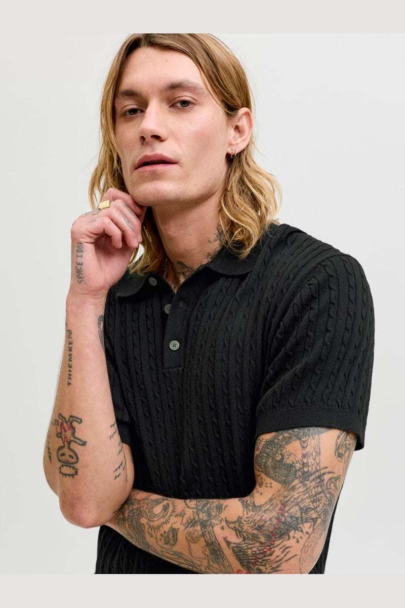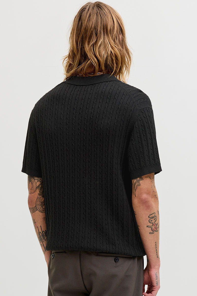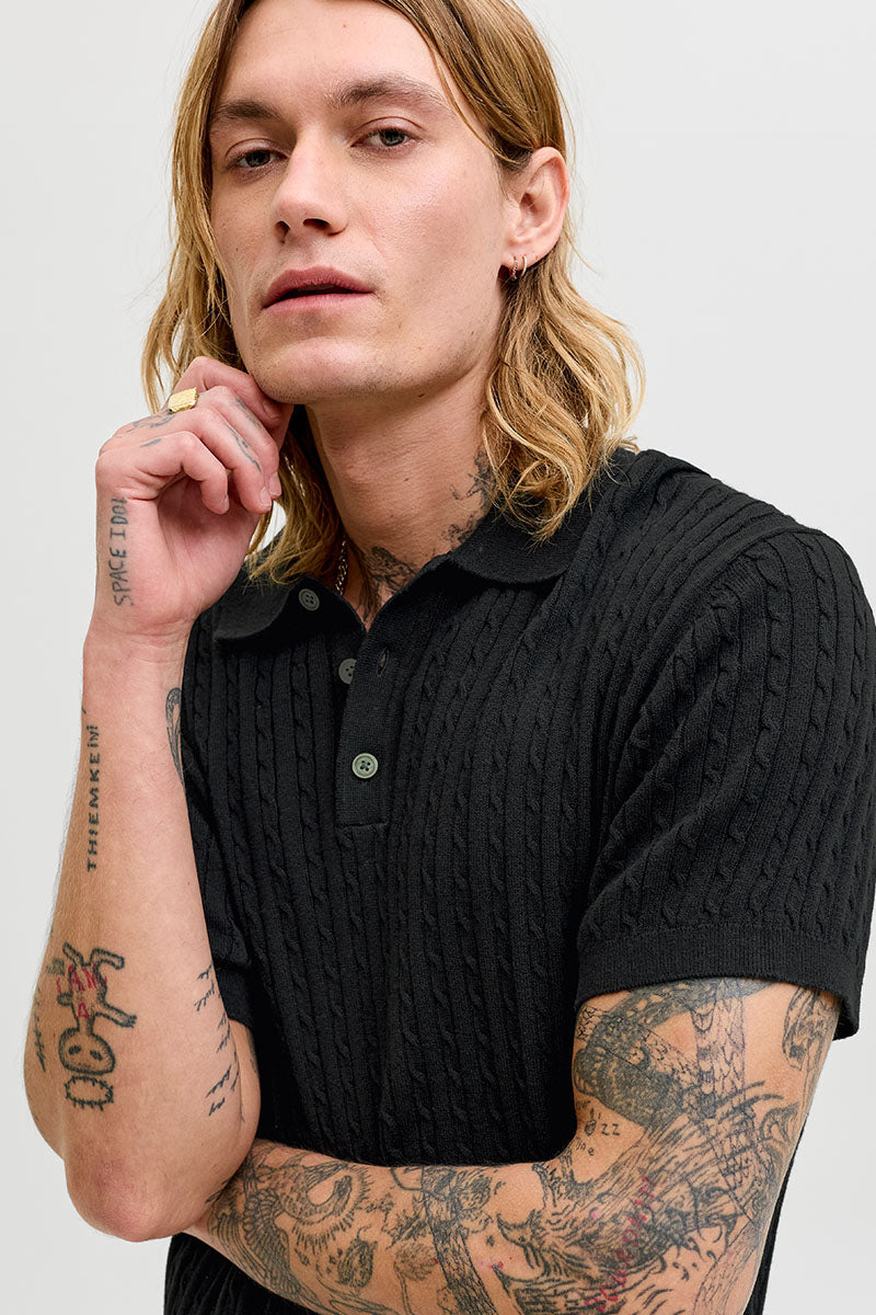 Emil Knit Cable Polo SS Black