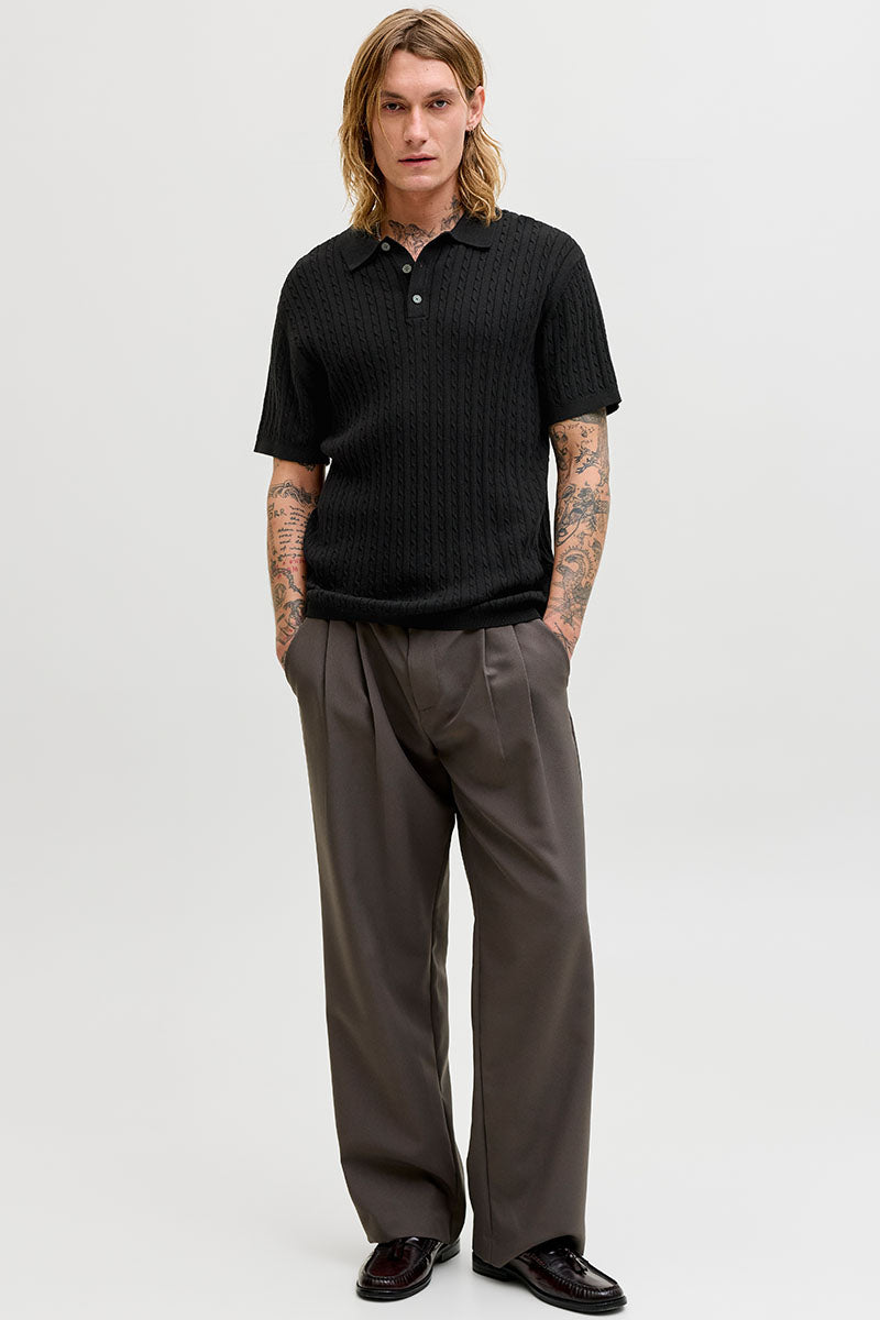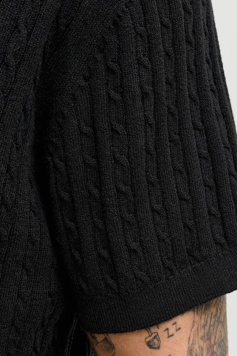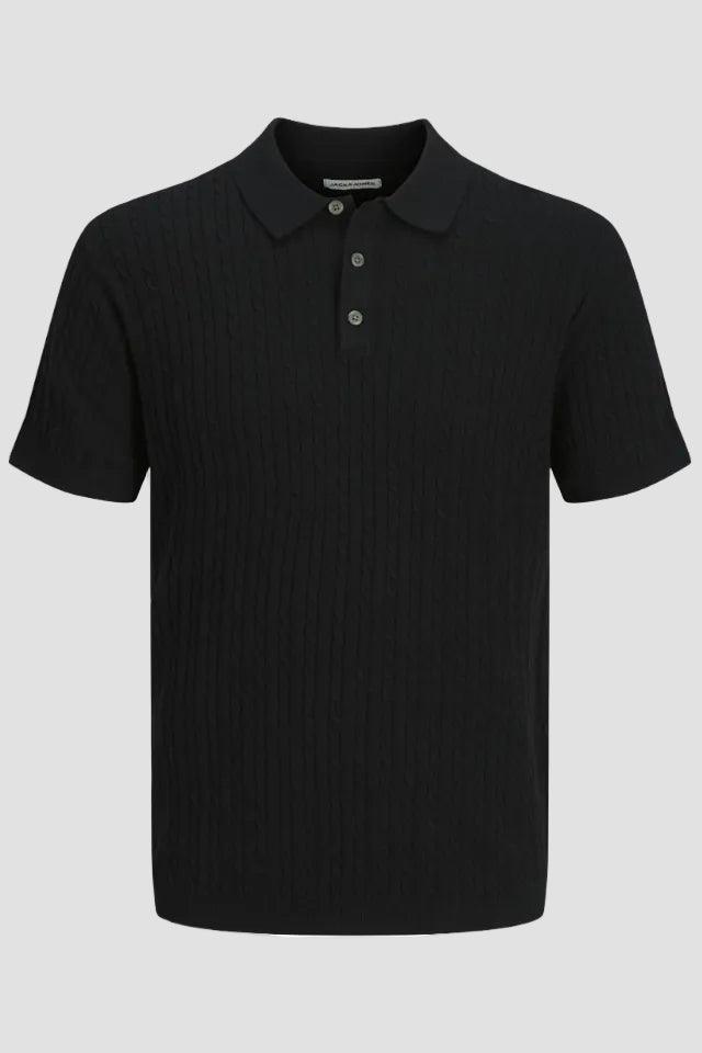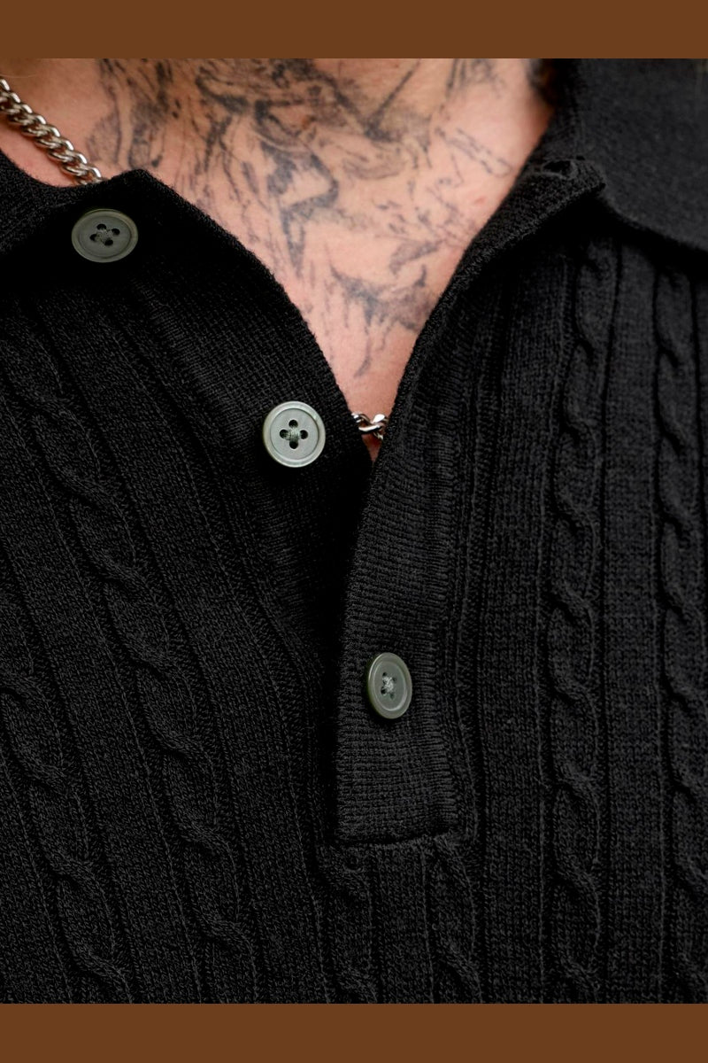 Emil Knit Cable Polo SS Black