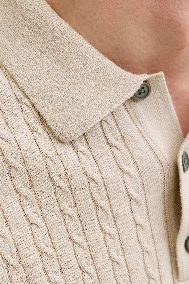 Stilname: JJEEMIL KNIT CABLE POLO SS LN