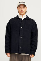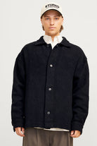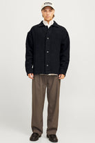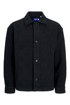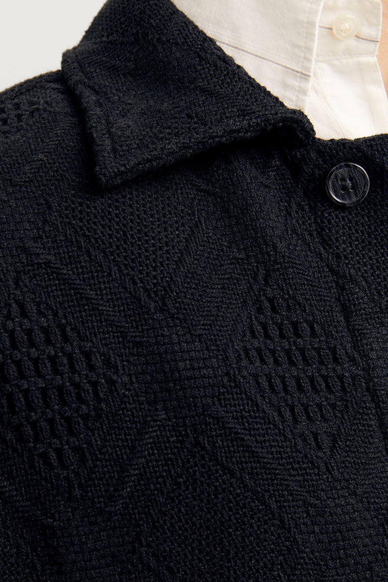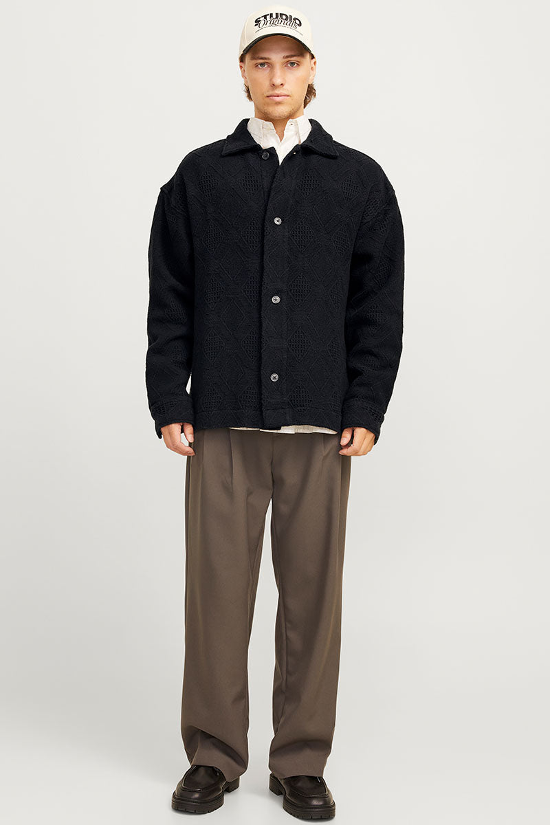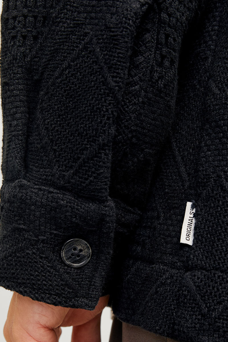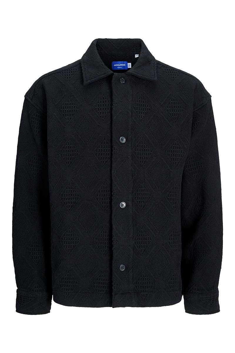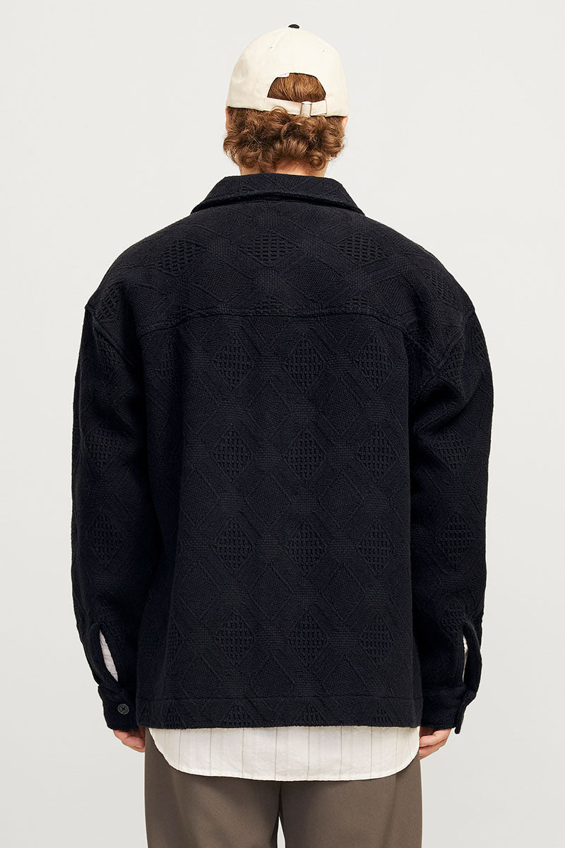 - Schwarzes langärmeliges Overshirt mit gewebtem Muster in weitem Schnitt
