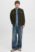 - Das Overshirt hat einen klassischen Kragen, zwei Vordertaschen, Knopfverschluss und Knöpfe an den Ärmeln