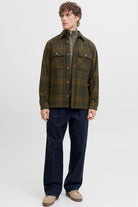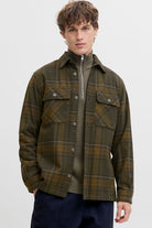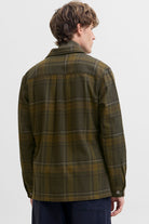 - Dunkelgrünes langärmeliges kariertes Overshirt