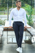 Diese Komfort-Herrenhose hat eine schicke taillierte Passform, die der Hose eine modische und stilvolle Silhouette verleiht. Die Hose ist um die Knöchel herum eng und um die Hüften herum lockerer - für ein angenehmes Tragegefühl den ganzen Tag über.