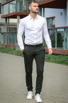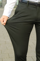 - Komfort durch Materialmix: Diese Herrenhose ist nicht nur stylish, sondern auch unglaublich bequem zu tragen. Sie besteht aus einem Materialmix aus 31 % Polyester, 64 % Viskose und 5 % Elasthan, was sie dehnbar und atmungsaktiv macht. Sie fühlt sich weich und angenehm auf der Haut an und ist somit perfekt für einen langen Arbeitstag oder ein entspanntes Wochenende geeignet.