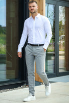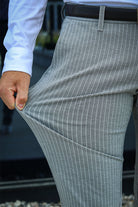 Die feinen weißen Nadelstreifen auf dem hellen Grau- Melange-Stoff sorgen für einen Hauch von elegantem Stil. Das Material hat eine weiche und luxuriöse Oberfläche und macht die Mark Pants zu einer geeigneten Wahl, sowohl für den Alltag als auch für besondere Anlässe. -