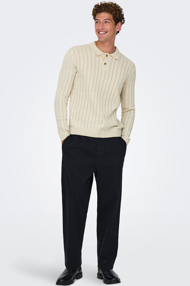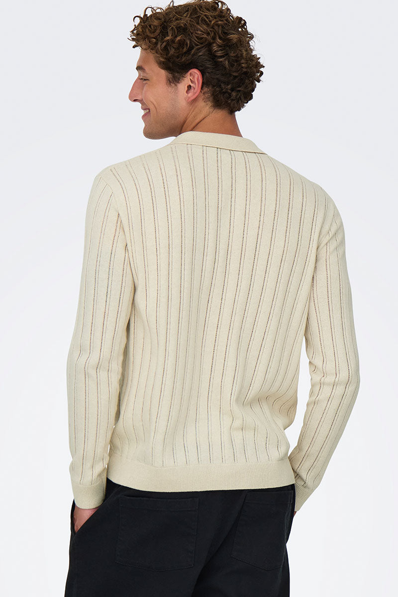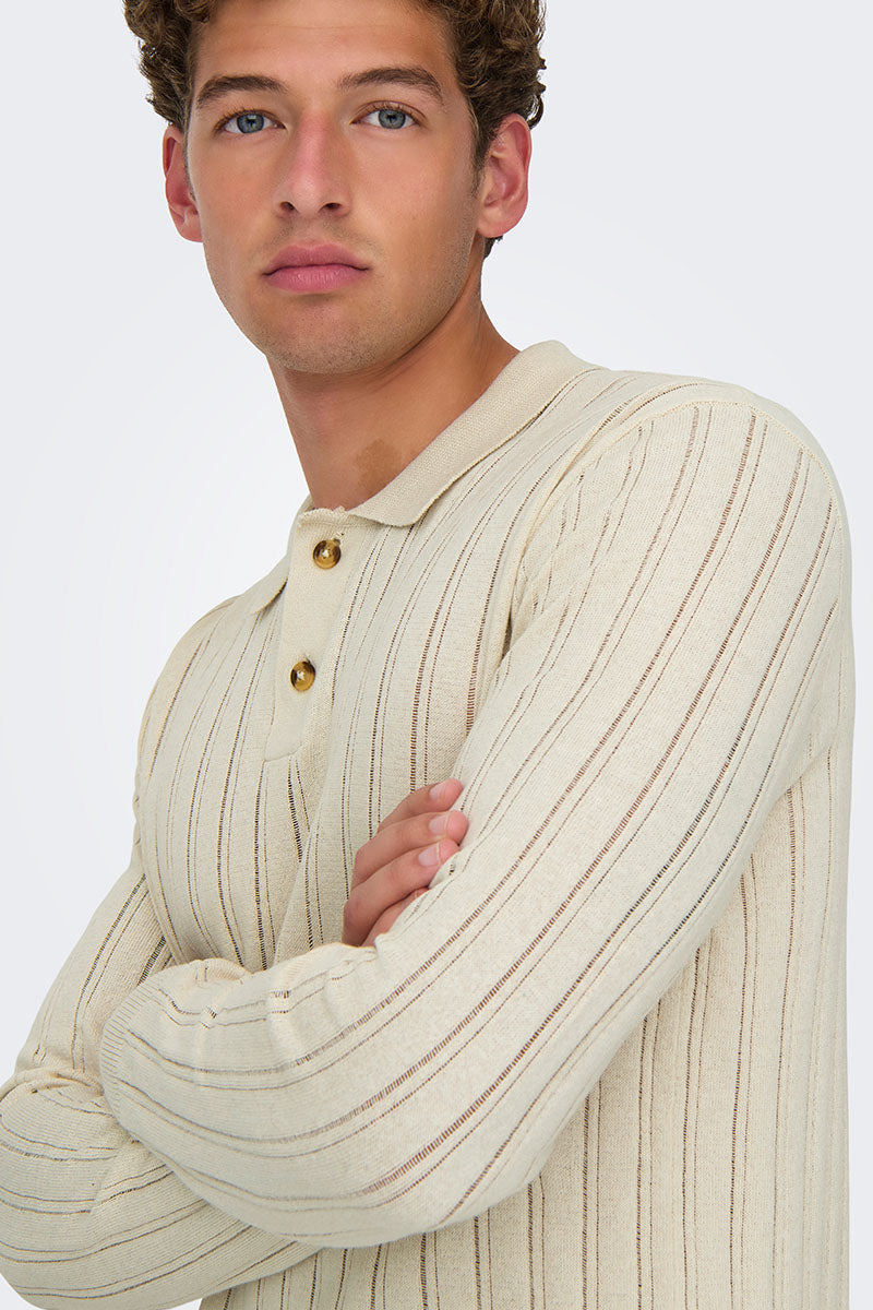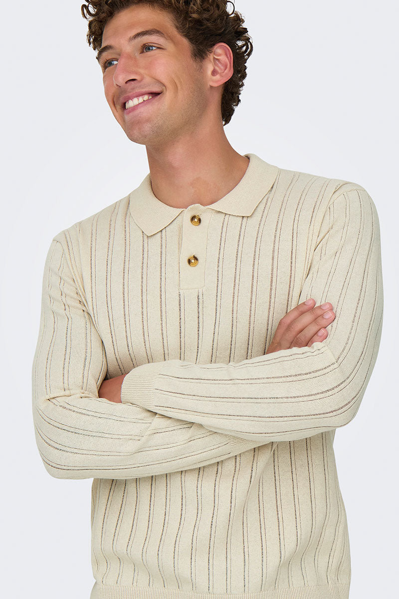 - Beiger langärmliger Polo‑Strick in Regular Fit