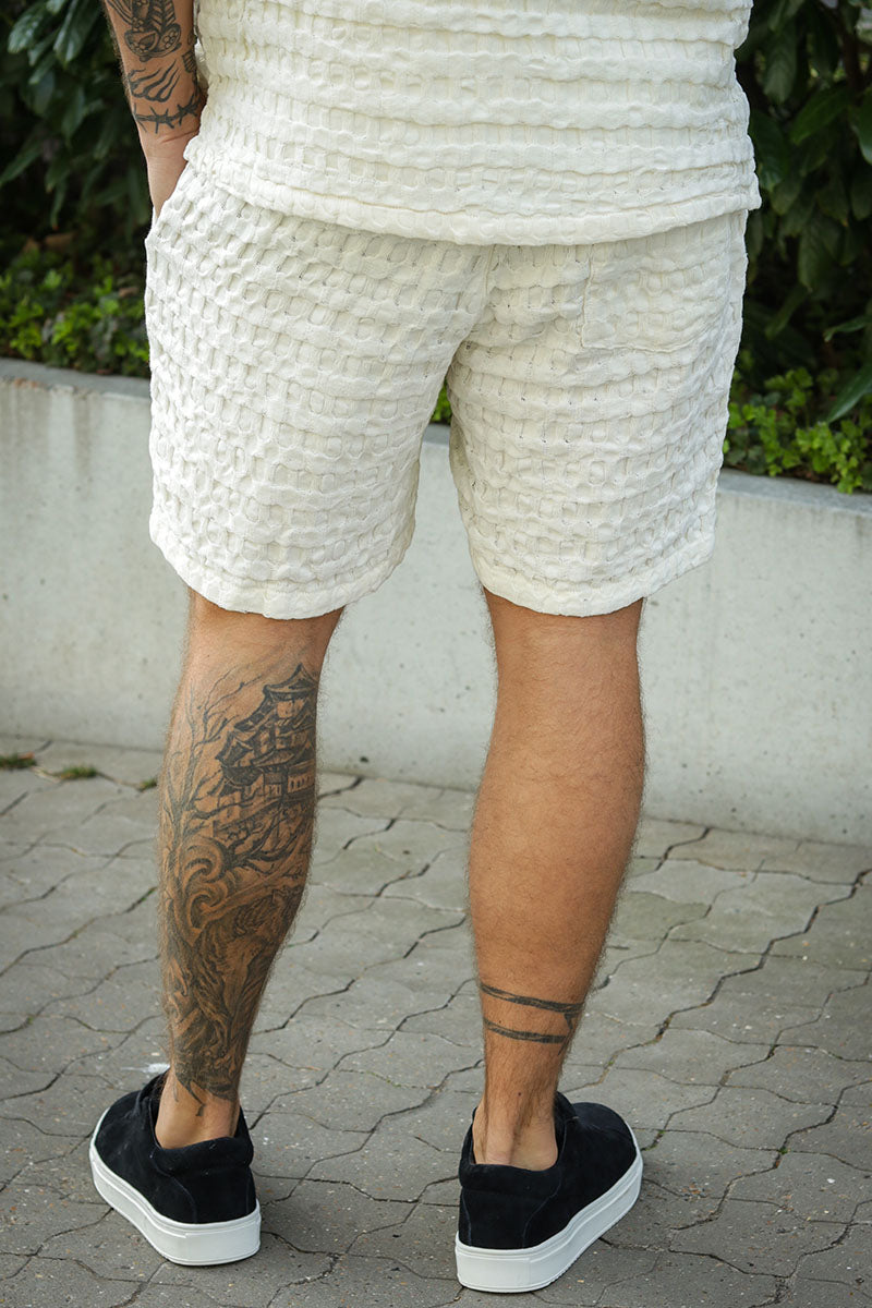 • Verfügt über zwei Fronttaschen, eine Gesäßtasche und einen Kordelzug in der Taille