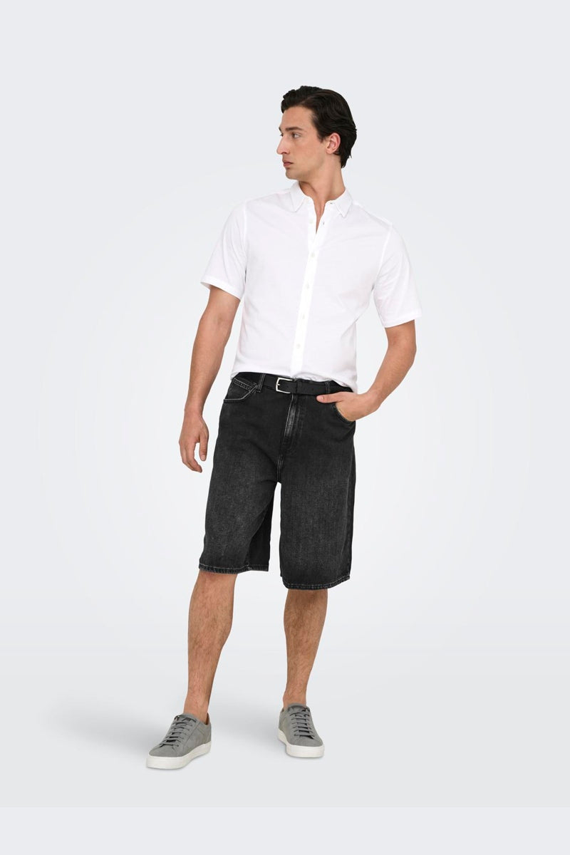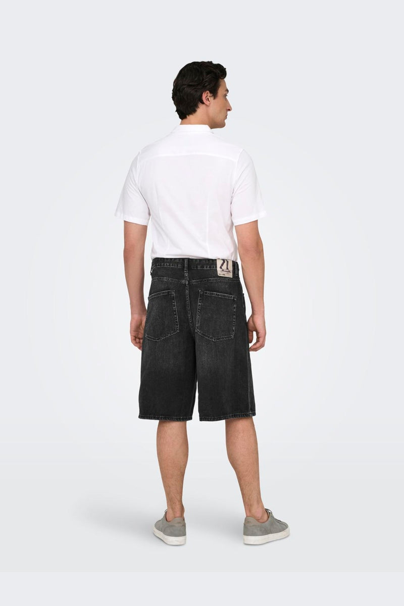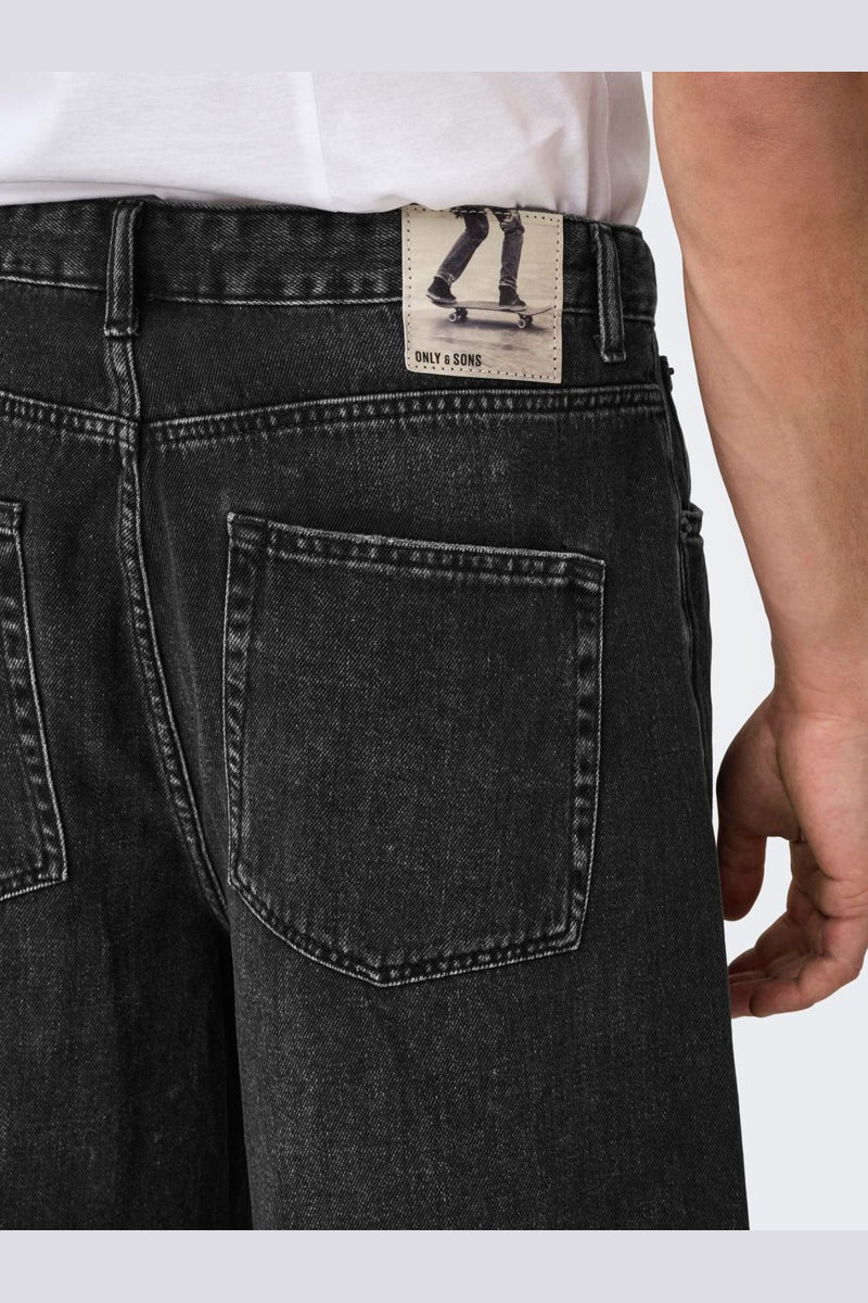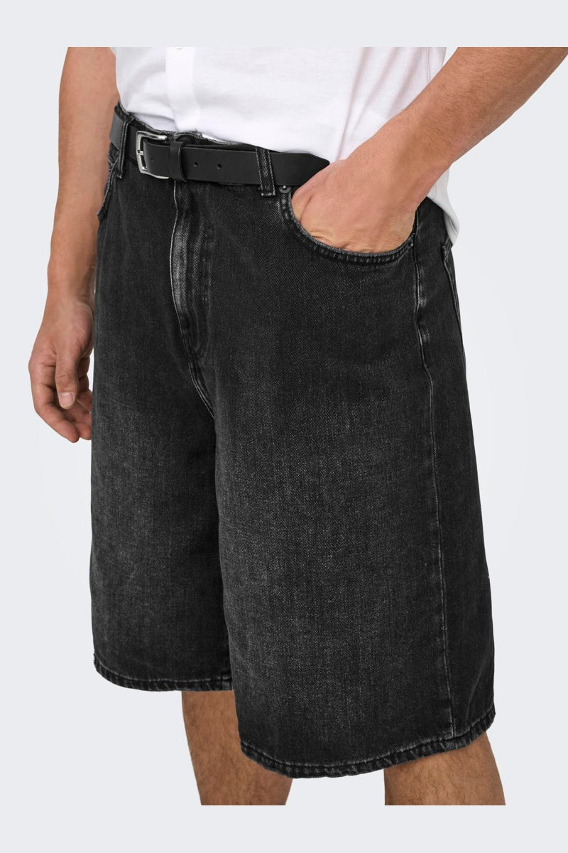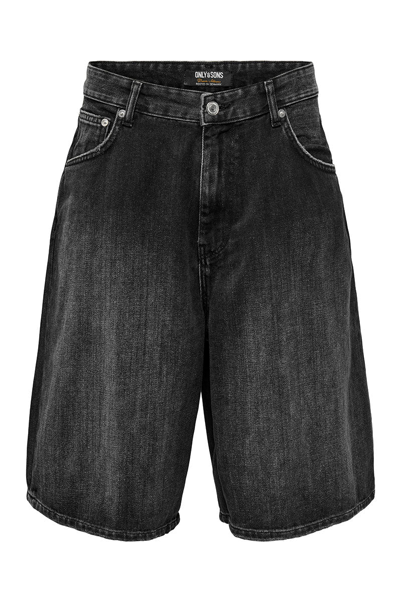 - Schwarze Denim-Shorts im Balloon Fit.
