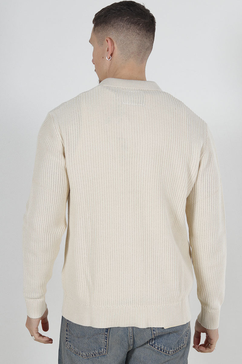 Grayson SS Chocket Knit Polo Cloud Dancer