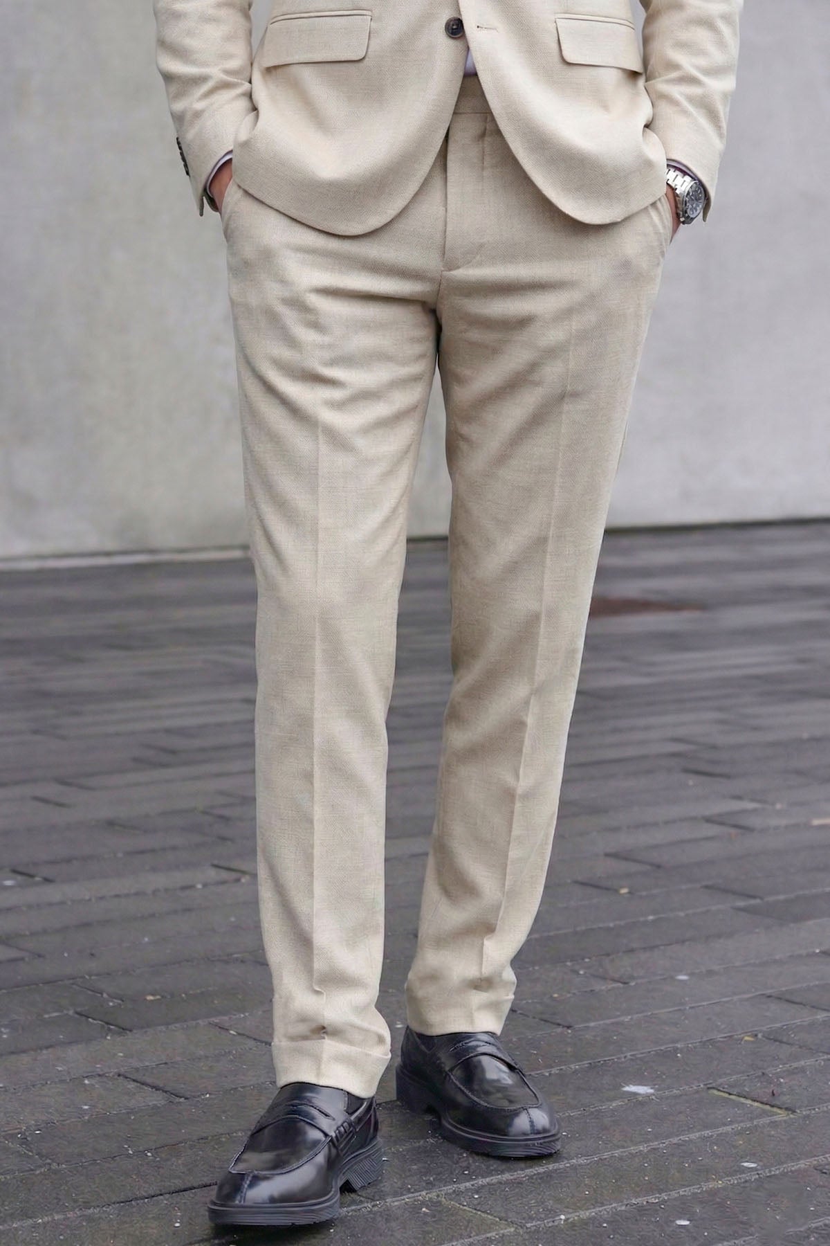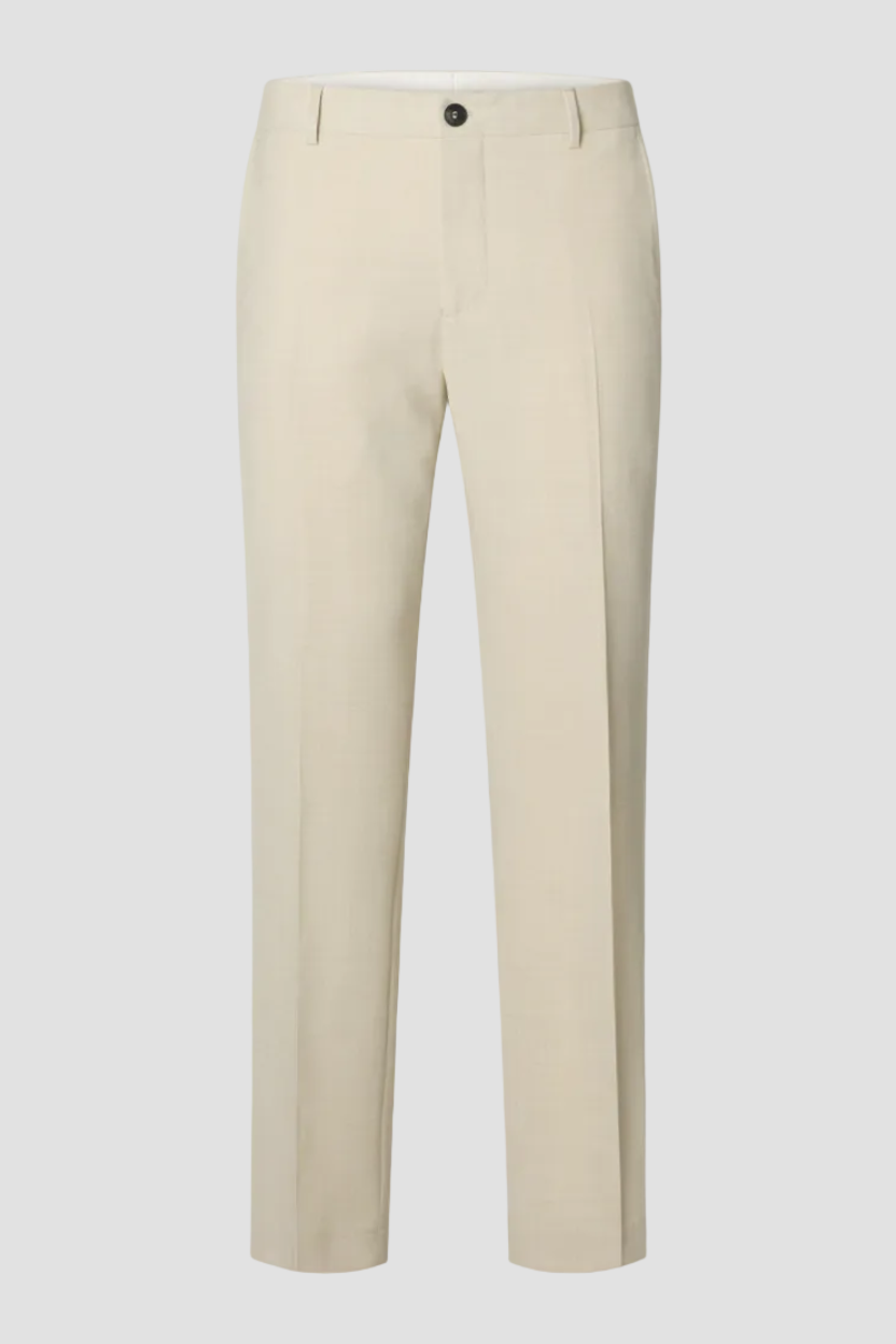 Diese slim fit Hose aus einer hochwertigen Mischung aus Polyester, Wolle und Leinen präsentiert sich in einem sanften Off-White-Ton. Sie ist mit einem Knopf- und Reißverschluss ausgestattet und zeichnet sich durch eine gebügelte Bügelfalte aus, die für einen eleganten, formellen Look sorgt. Praktische Taschen vorne und hinten ergänzen das durchdachte Design perfekt. Die Hose ist ideal für zeitlose Outfits bei besonderen Anlässen im Frühling.