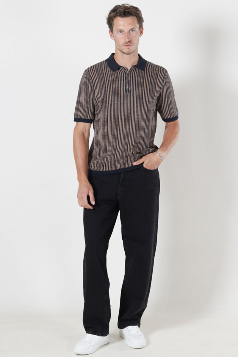 - Schwarzer und brauner Polo-Strickpullover in regulärer Passform