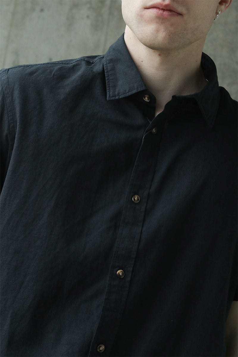 - Kurzarm-Leinenhemd mit klassischem Kragen.