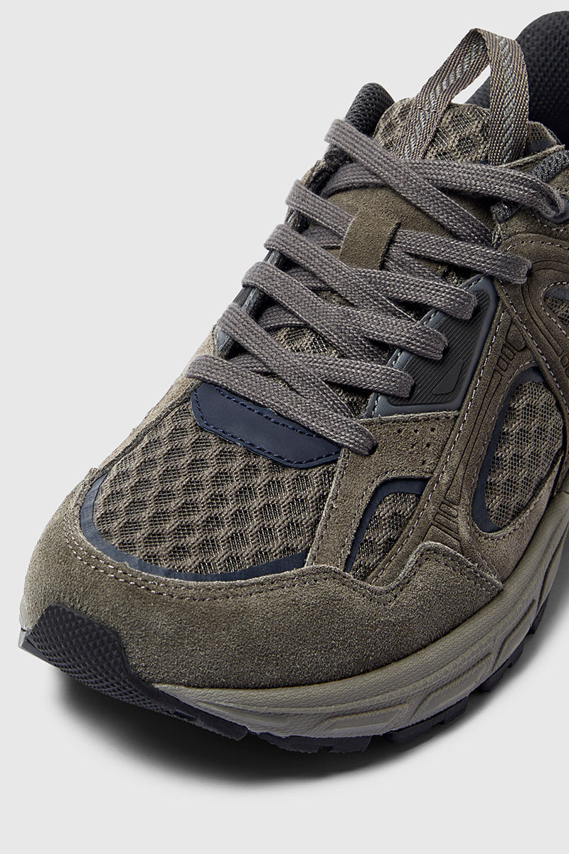 - Schuhe mit Schnürverschluss, Mesh‑Details und Zuglasche an Zunge und Ferse