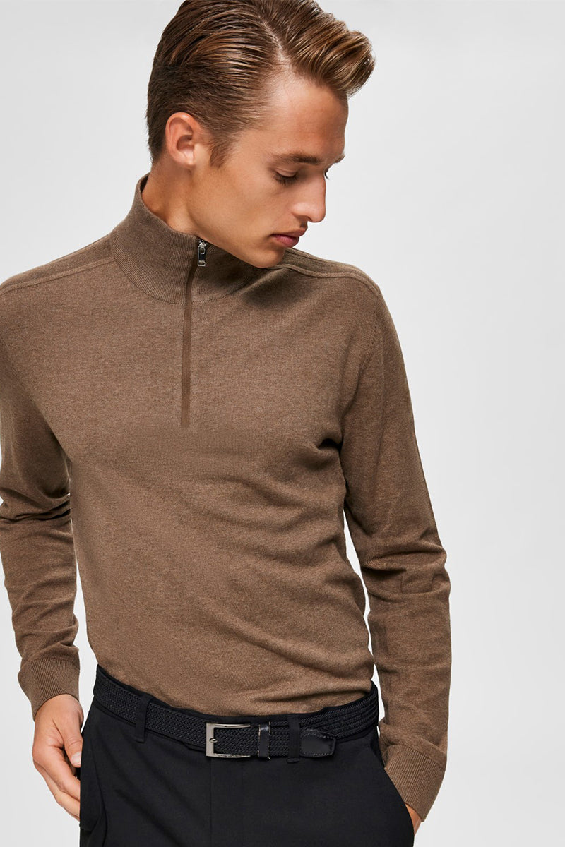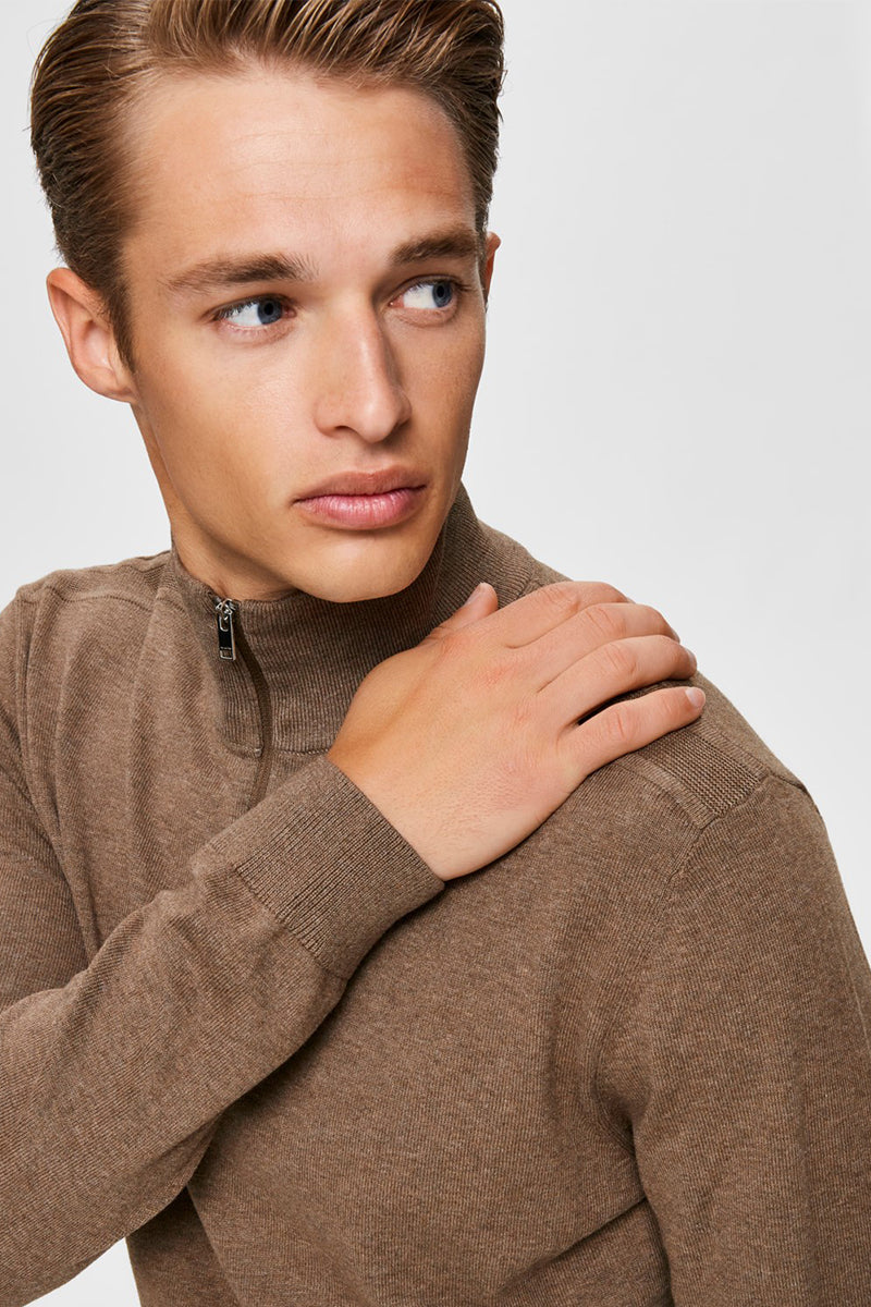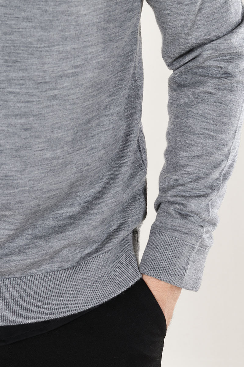 Dane LS Structure Knit Roll Neck Light Grey Melange